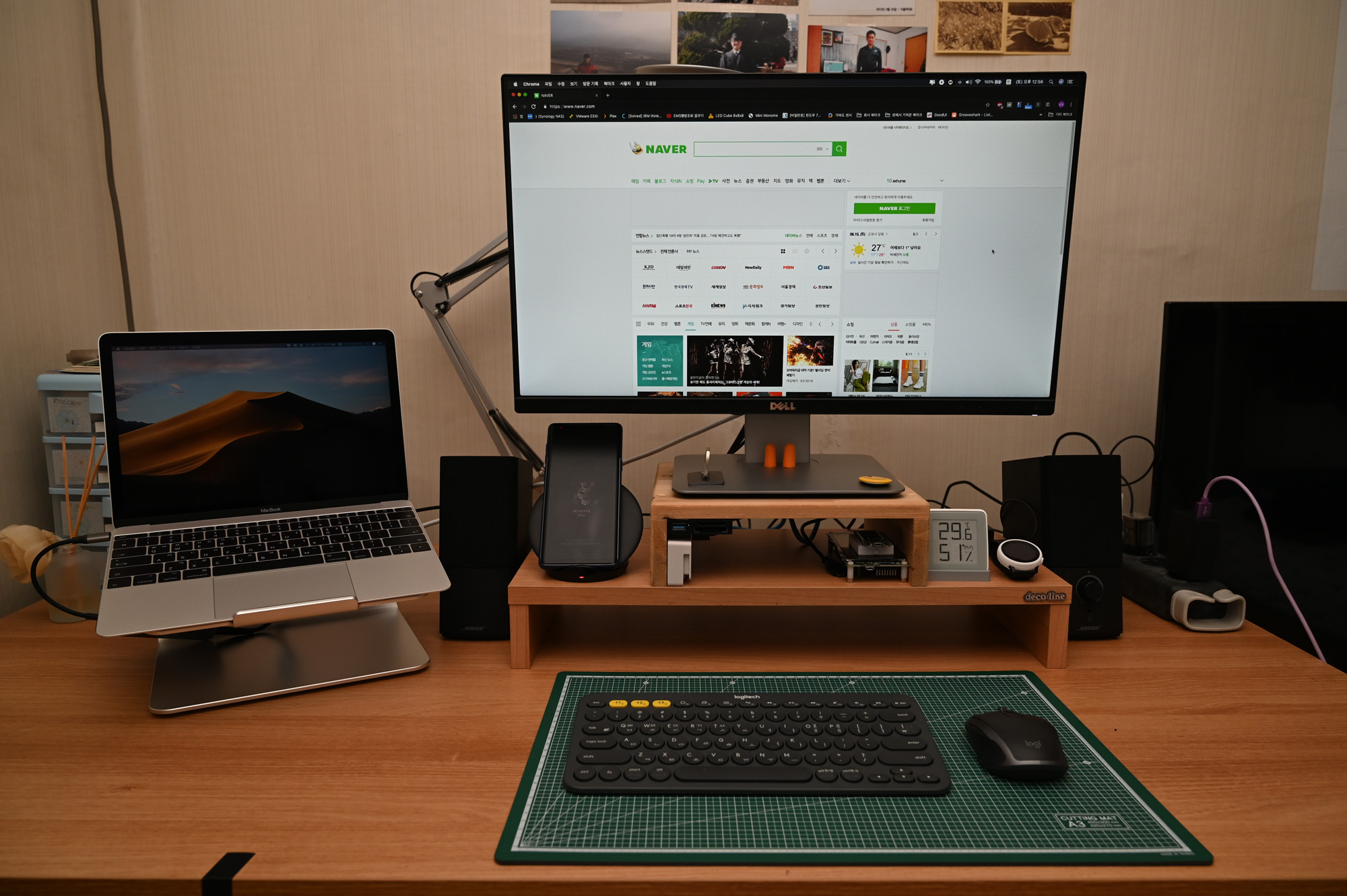기존 2017년형 맥북 12인치와 델 U2414H로 구성된 책상 사진입니다. 이것이...