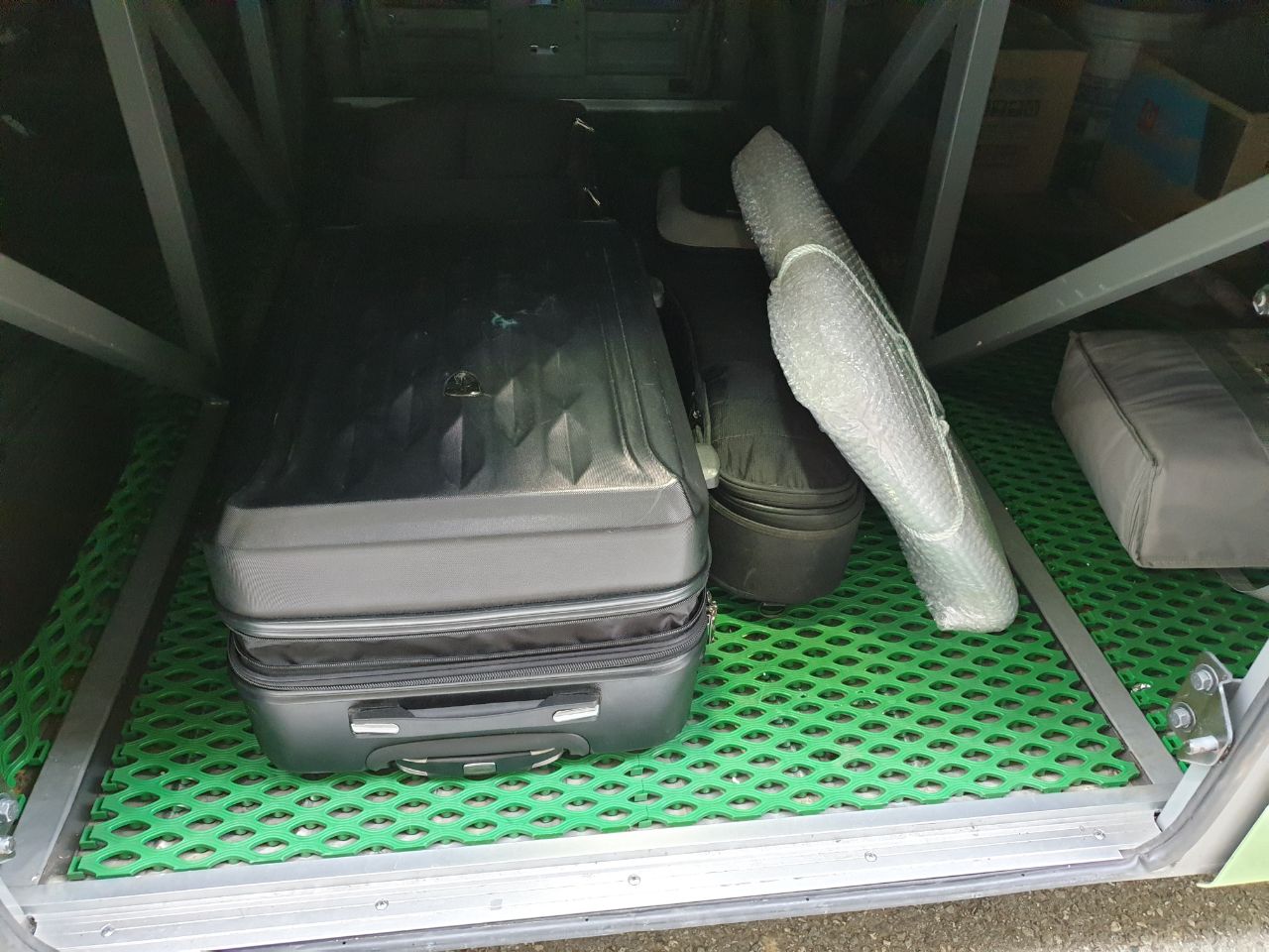 이게 뭔 고생인지.. 본가 근처에서 탄 고속버스의 짐칸에 실었습니다. 버스가 한바퀴 구르지 않는 이상은 안전하게 잘 가겠죠.