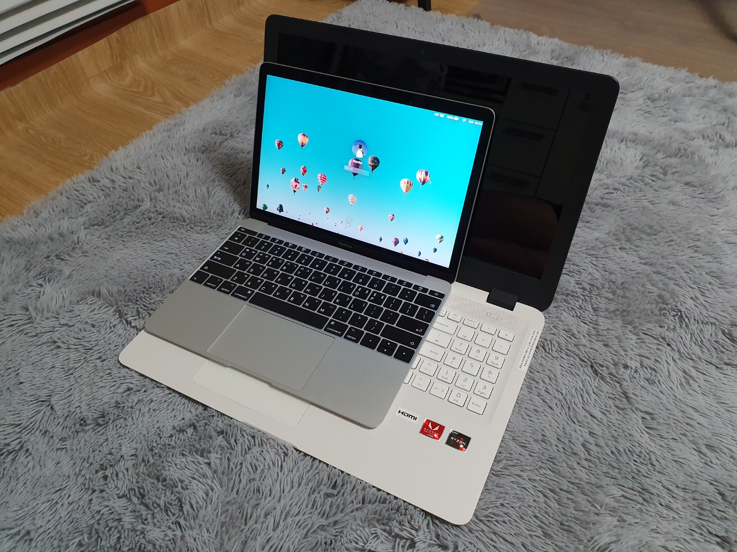 노트북을 열어봤습니다. 와.. 정말 넓고 큽니다. 제가 현재 사용 중인 맥북 12인치를 올려보니.. 맥북이 엄청 작아보입니다.