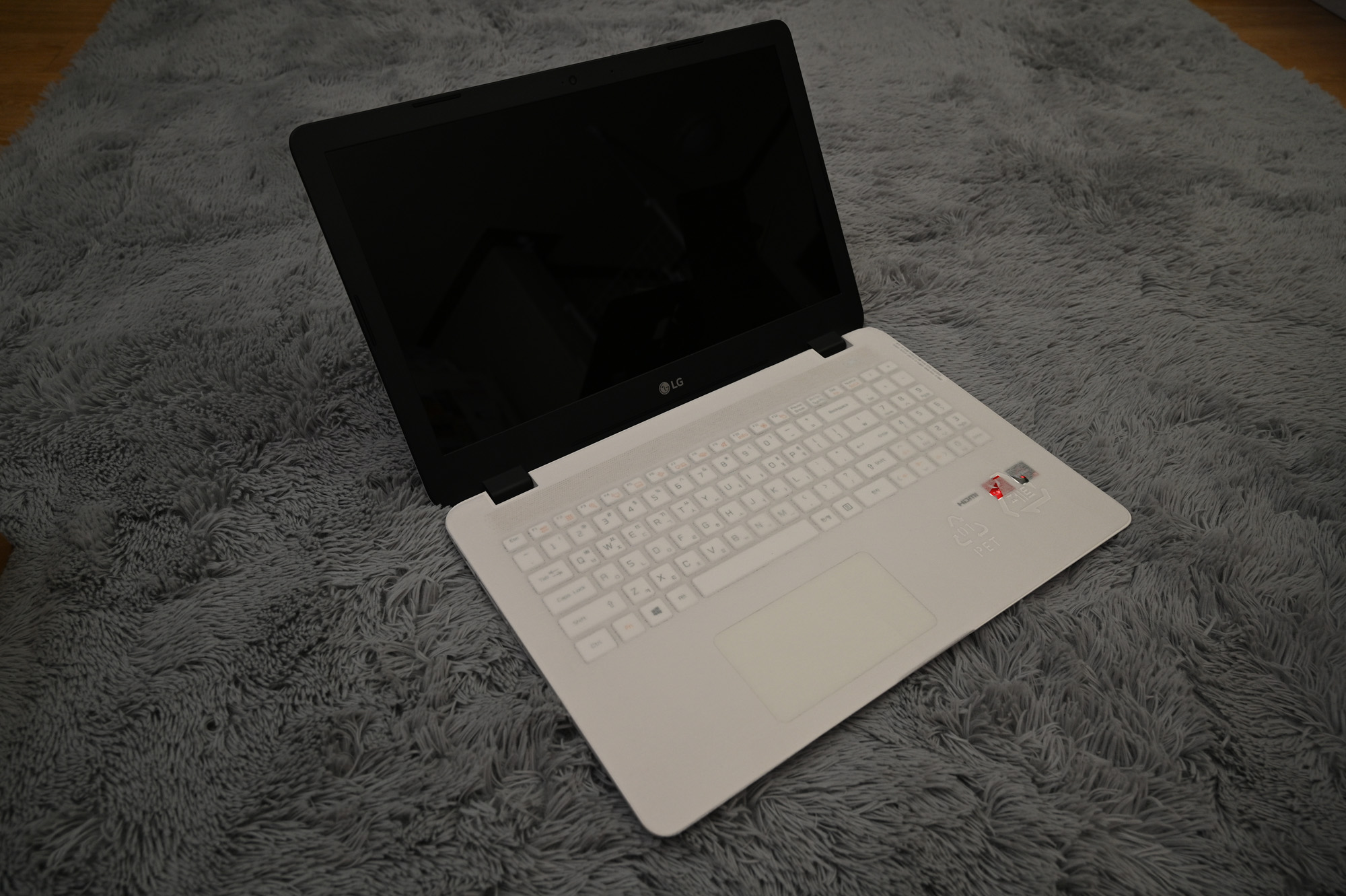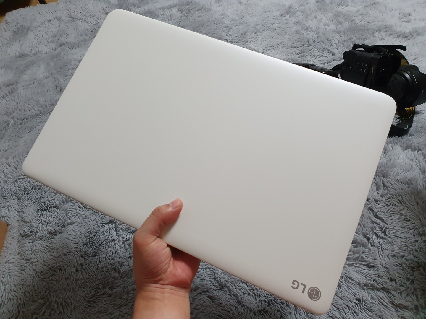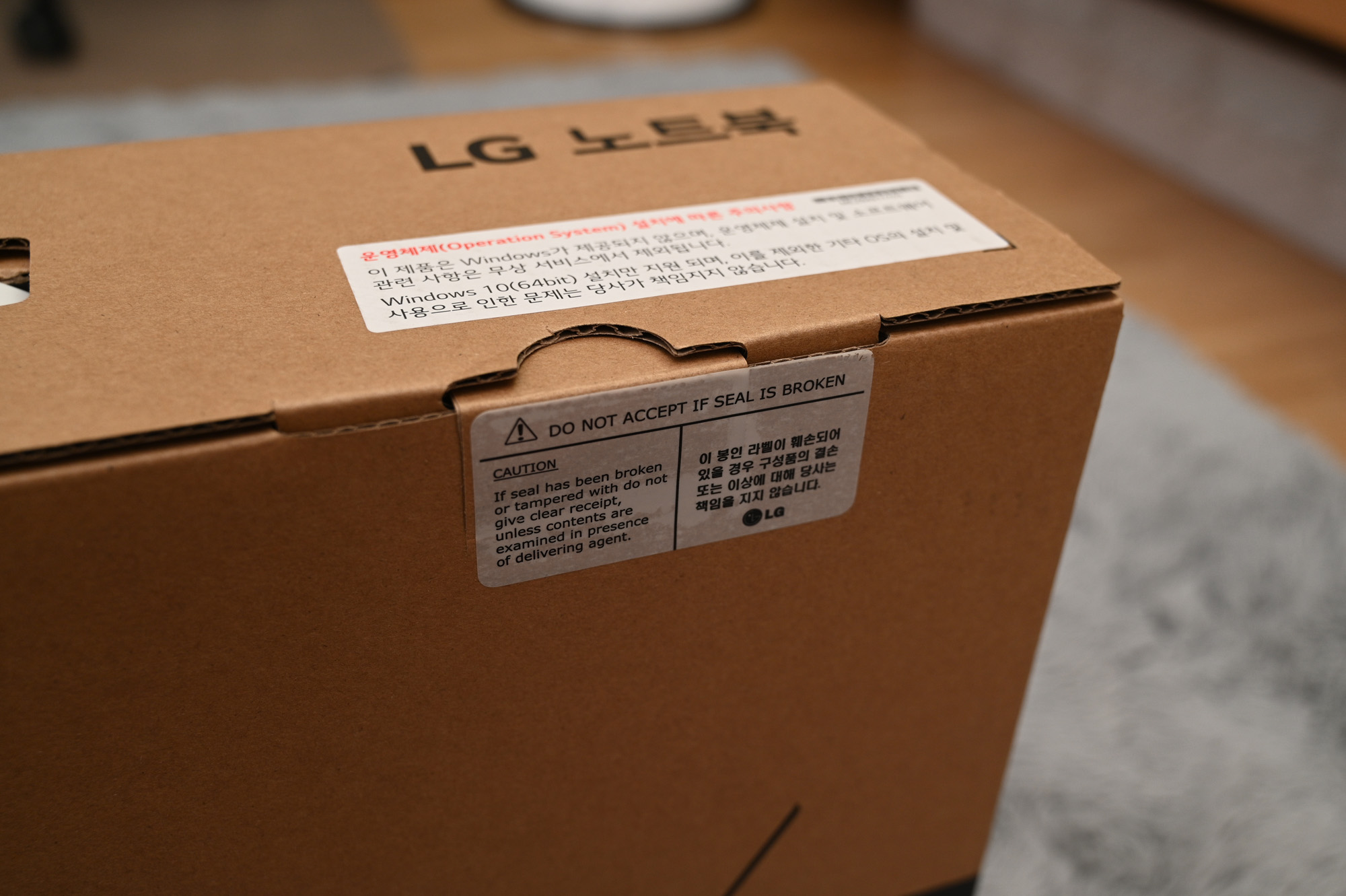 한쪽 면 모서리에 LG 마크가 붙어 있습니다.