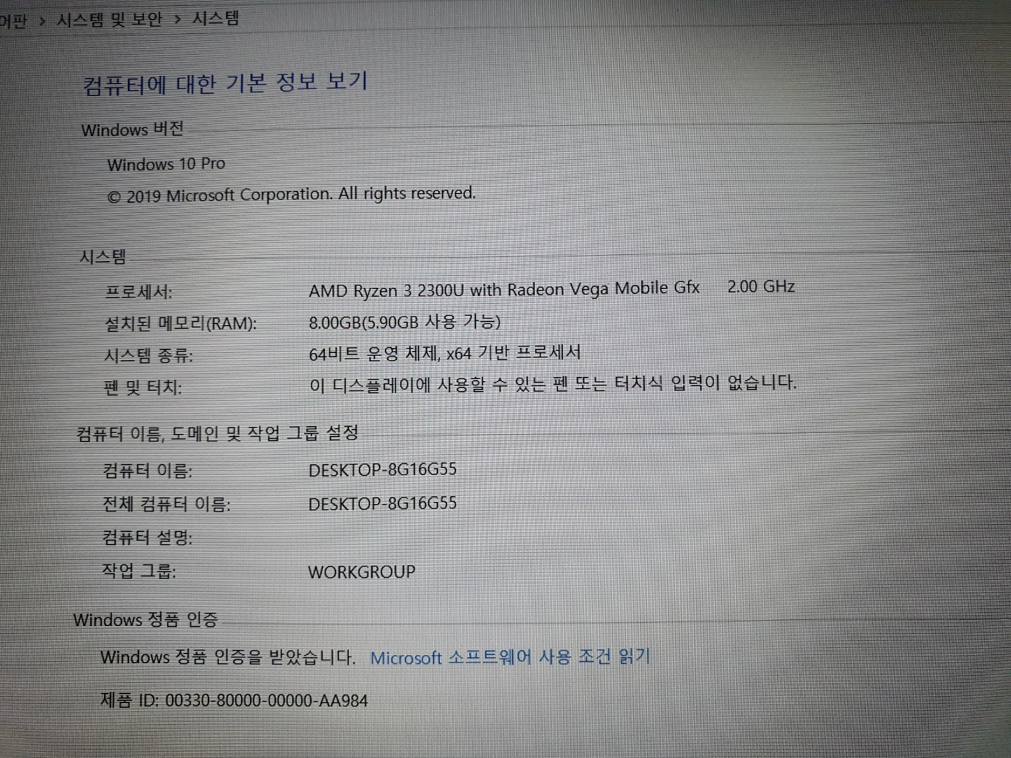 - CPU : AMD 라이젠3 2300U