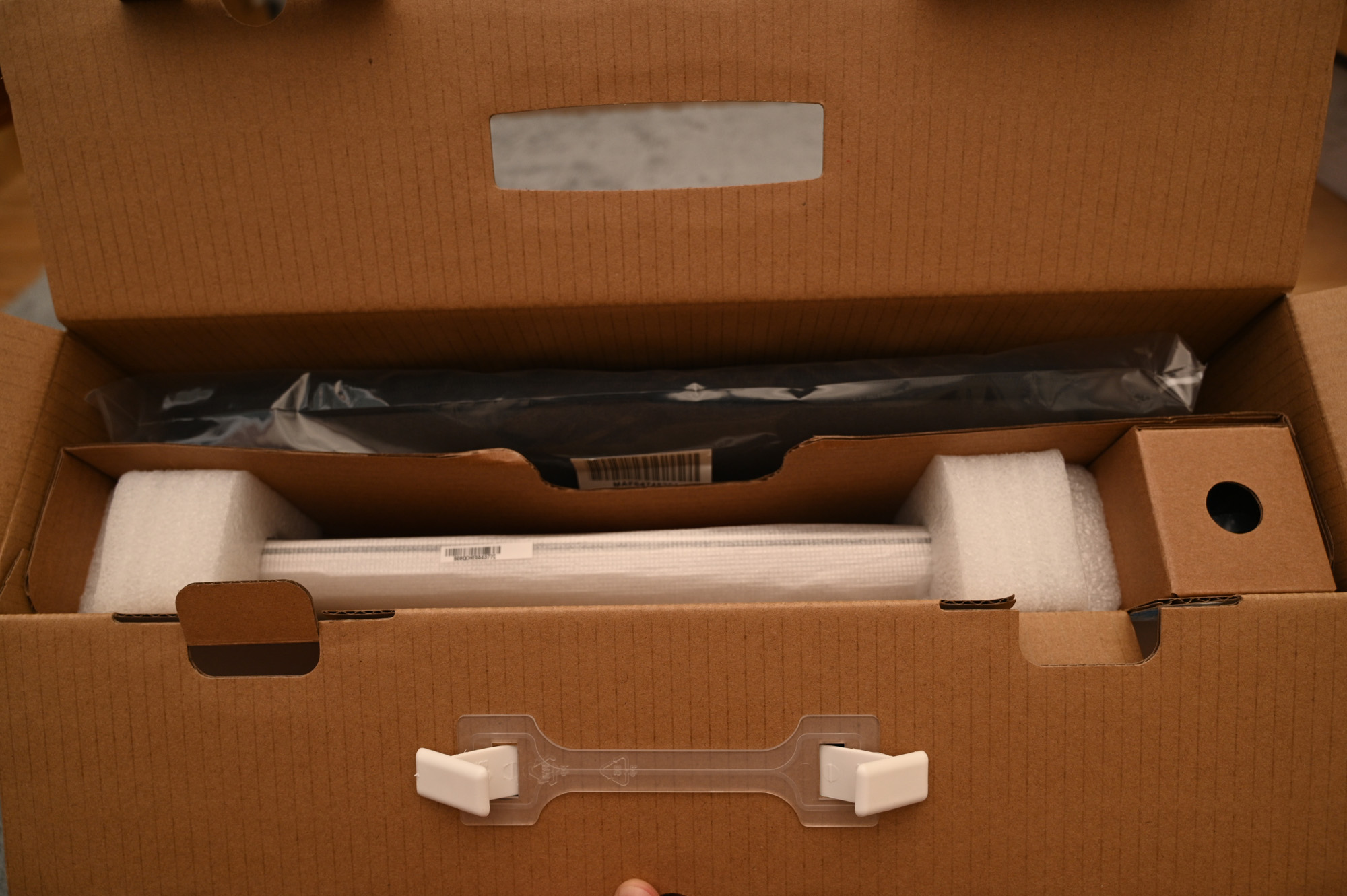 박스를 개봉해보니 노트북 박스와 오른쪽에 무엇인가 있습니다. 사은품 1번인 마이크로소프트 무선 마우스입니다.