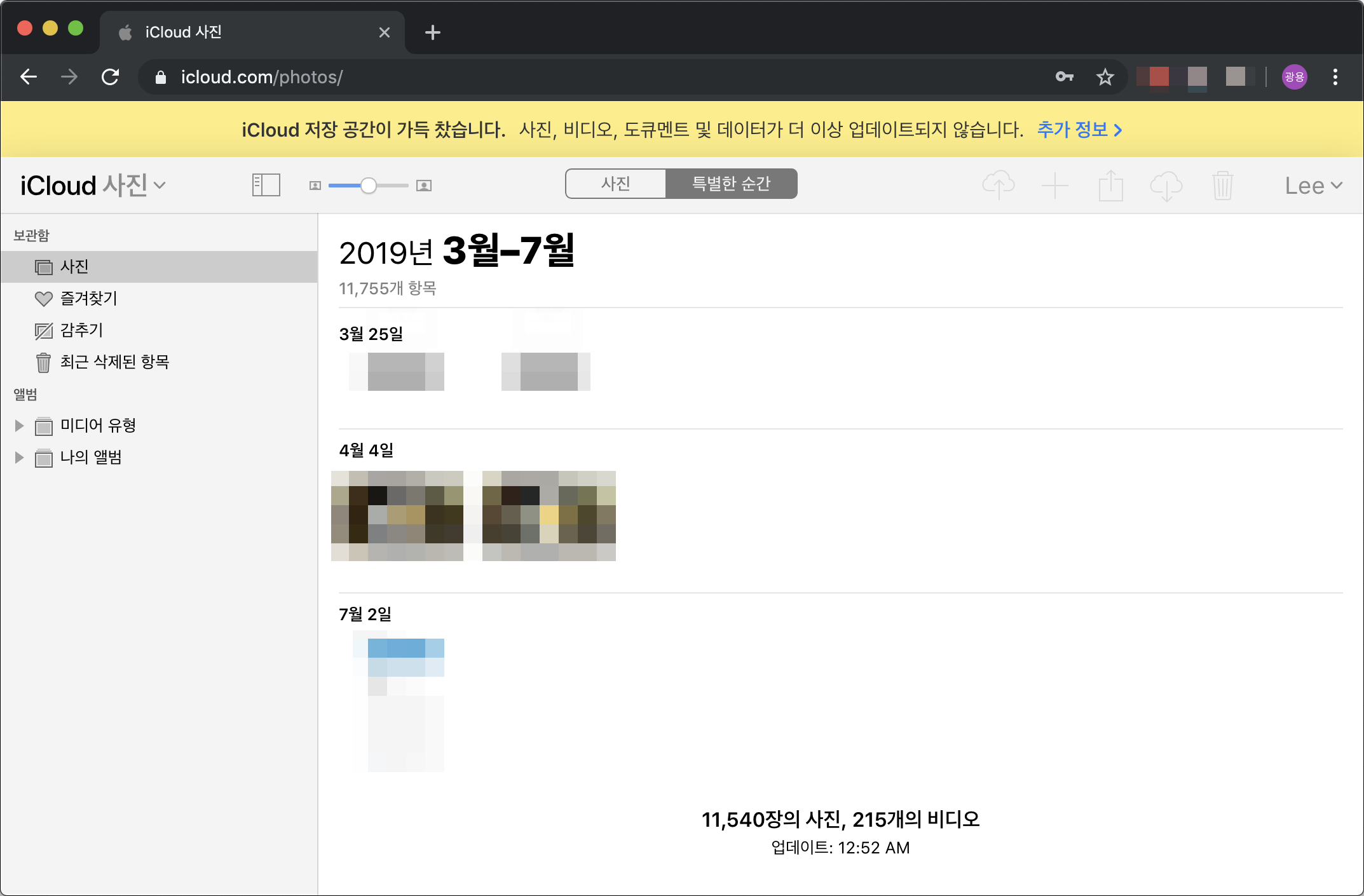 2) iCloud에 업로드 되어 있는 원본 용량들을 감당할 수 있는 저장 공간