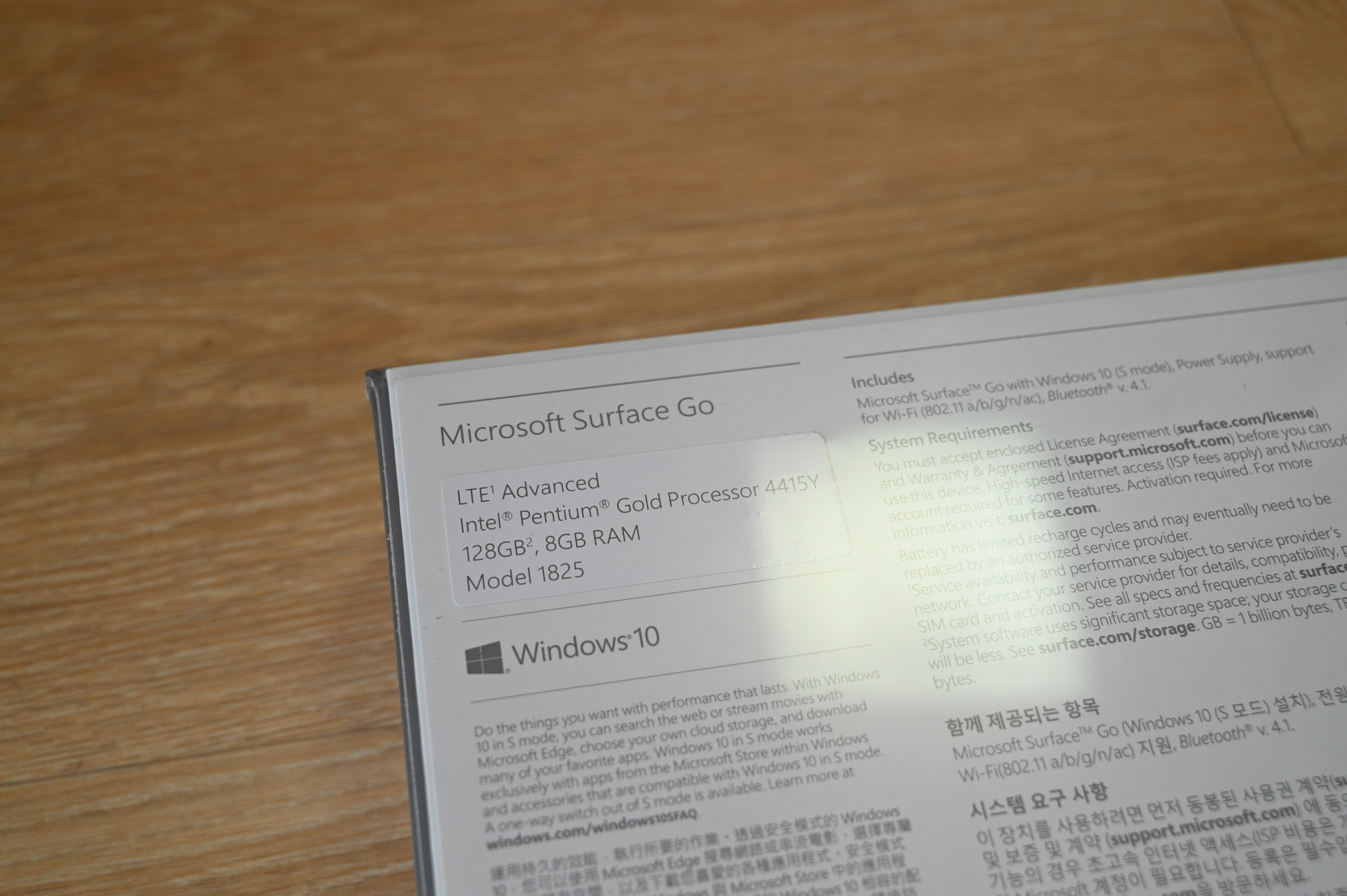 새 제품을 보는건 정말 행복합니다. 제가 구입한 서피스 고 LTE의 사양은 다음과 같습니다.