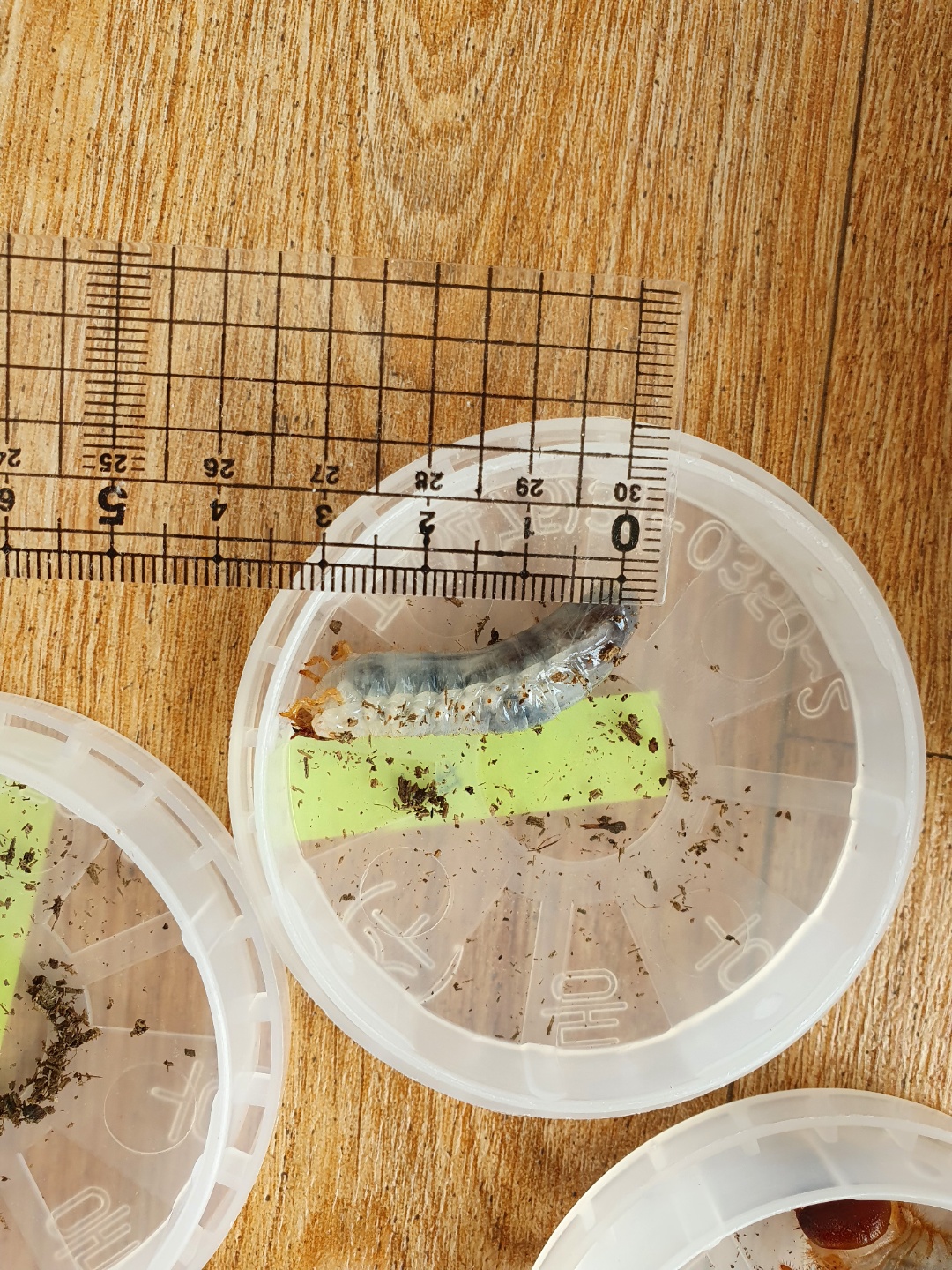 이때 까지만 해도 이렇게나 작았는데 시간이 흐르고 흐르다보니 사육통으로 보이는 애벌레들의 크기가 커지기 시작했습니다. 분양 받은지 3주, 태어난지 5주가 된 지금 이 시점에서 이사를 시켜주기로 했습니다. 큰 통으로 모두 다 모을 것입니다.