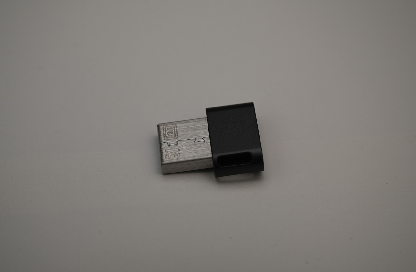 USB 메모리의 후면에는 삼성 로고가 있습니다. 데이터를 읽고 쓰는 것을 알려주는 LED는 존재하지 않습니다.