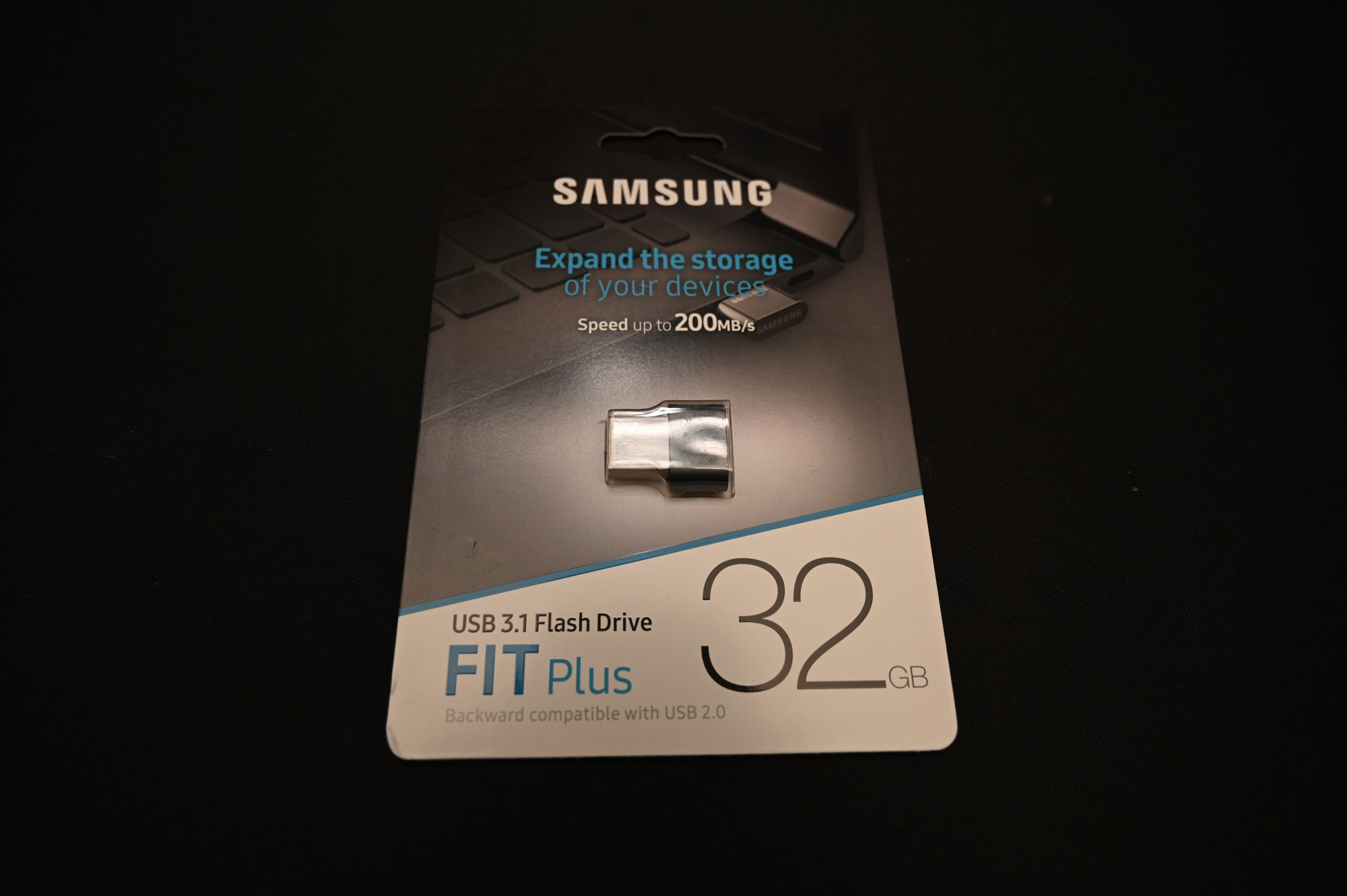 삼성 USB메모리 3.1 FIT PLUS 제품군의 32GB 제품입니다. 최대 200MB/s 속도라고 적혀 있습니다.