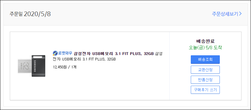 이 USB메모리를 오늘 새벽 0시 31분에 구입했는데, 아침에 눈 떠보니 도착해 있었습니다. 역시 로켓와우는 대박입니다. 갓팡!