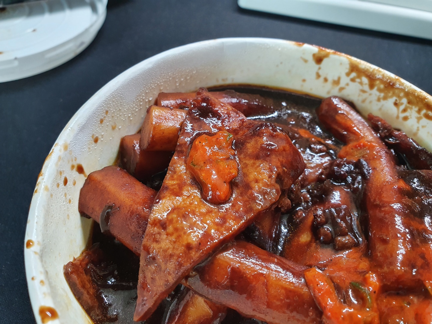 짜장 떡볶이의 짜장 소스의 양이 꽤 충분했으며 진한 편에 속했습니다. 이 짜장 소스를 먹으면서 어디선가 먹어본 맛이 생각 났는데 도대체 어떤 것이었는지 기억이 안납니다. 그렇게 맛을 음미하며 행복하게 먹었습니다. 빨간 떡볶이와는 다른 짜장 떡볶이는 저에게 신세계를 안겨주었습니다. 이거 진짜 맛 대박이네요.
