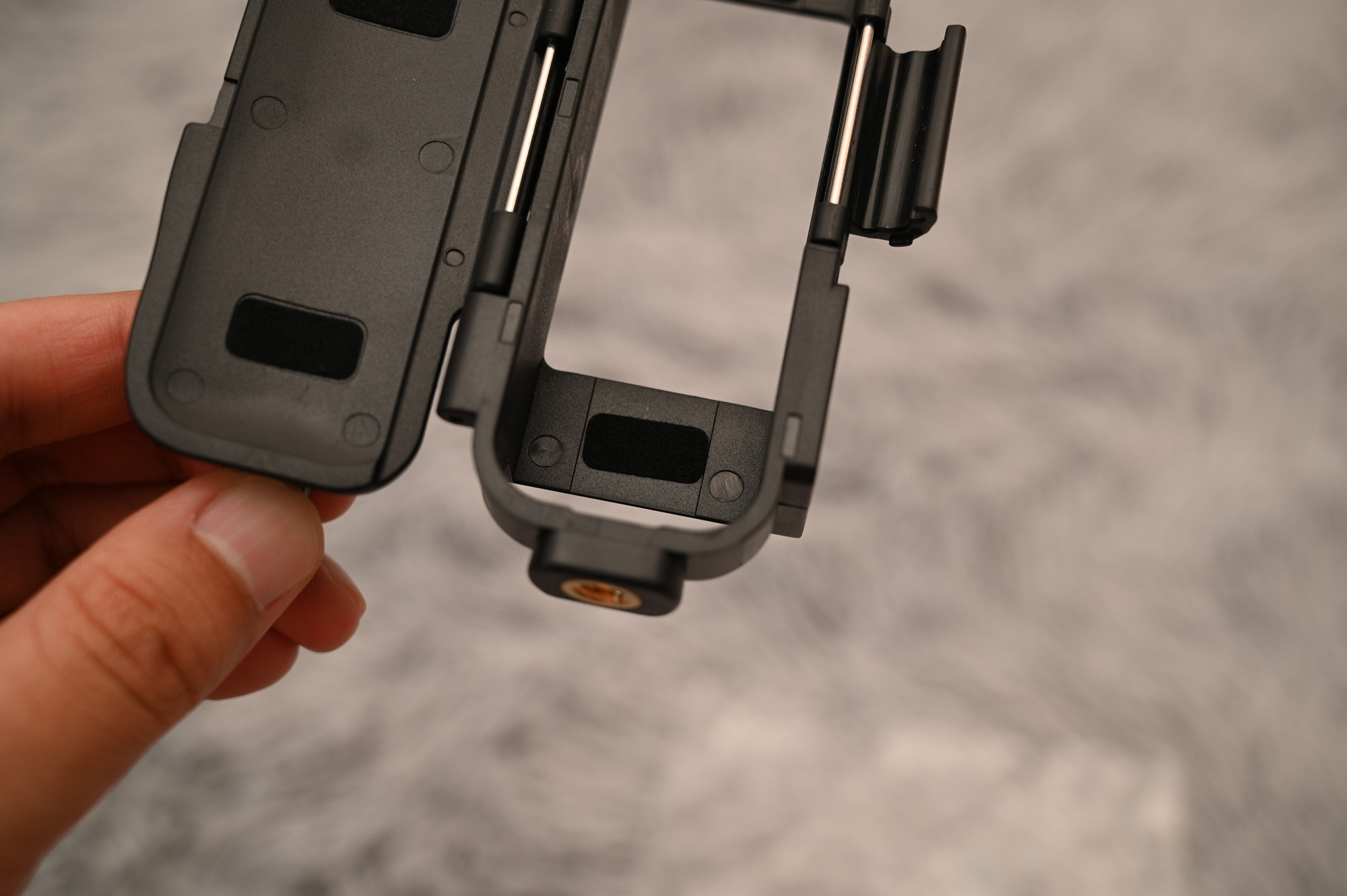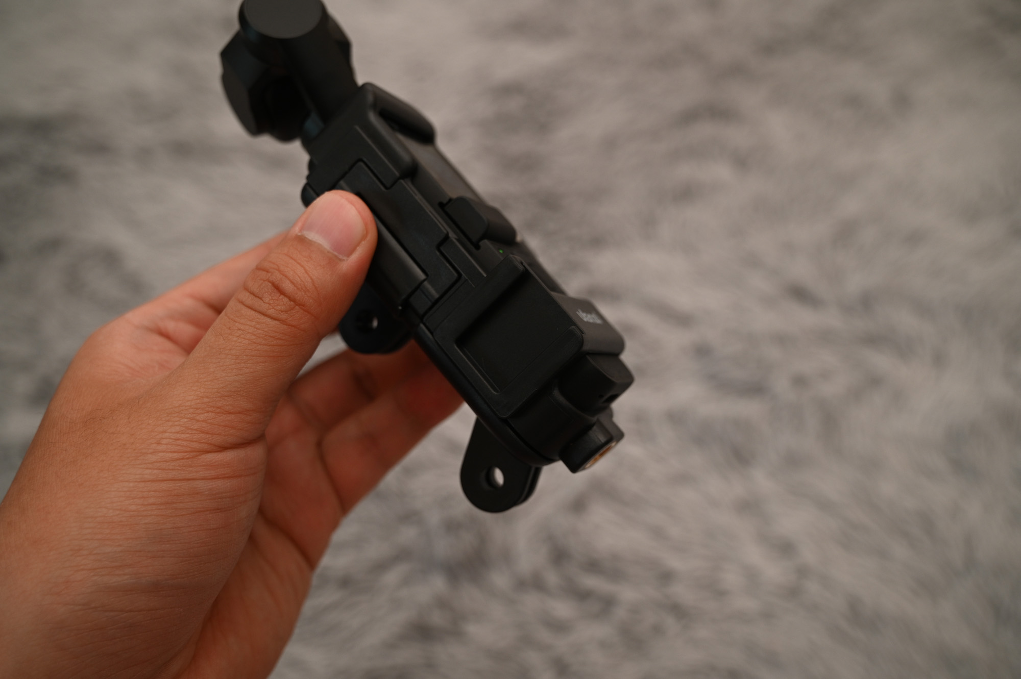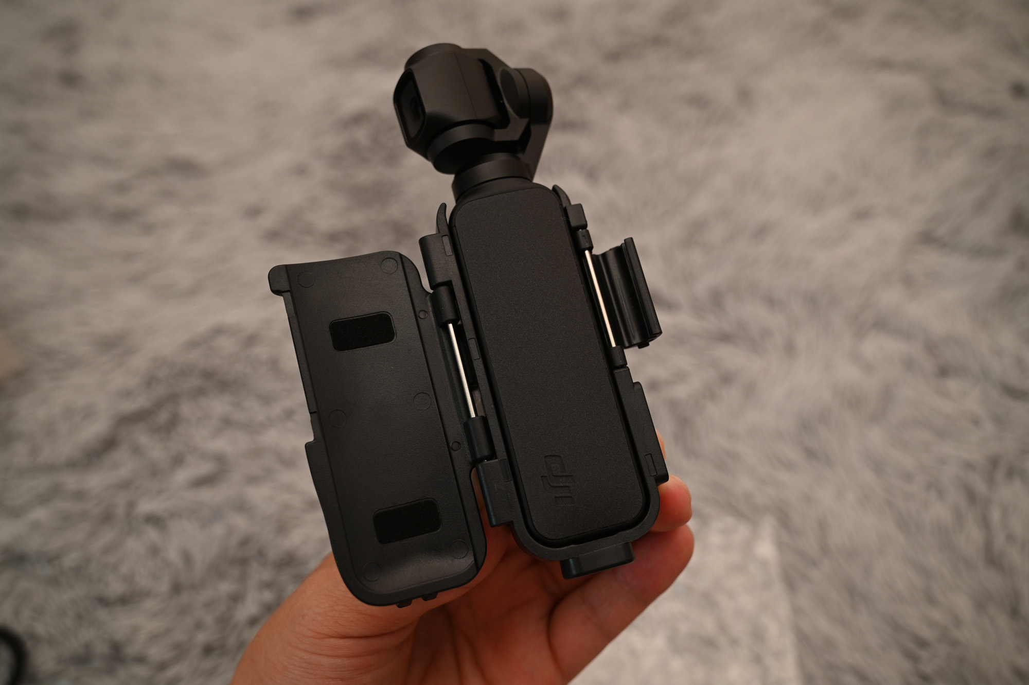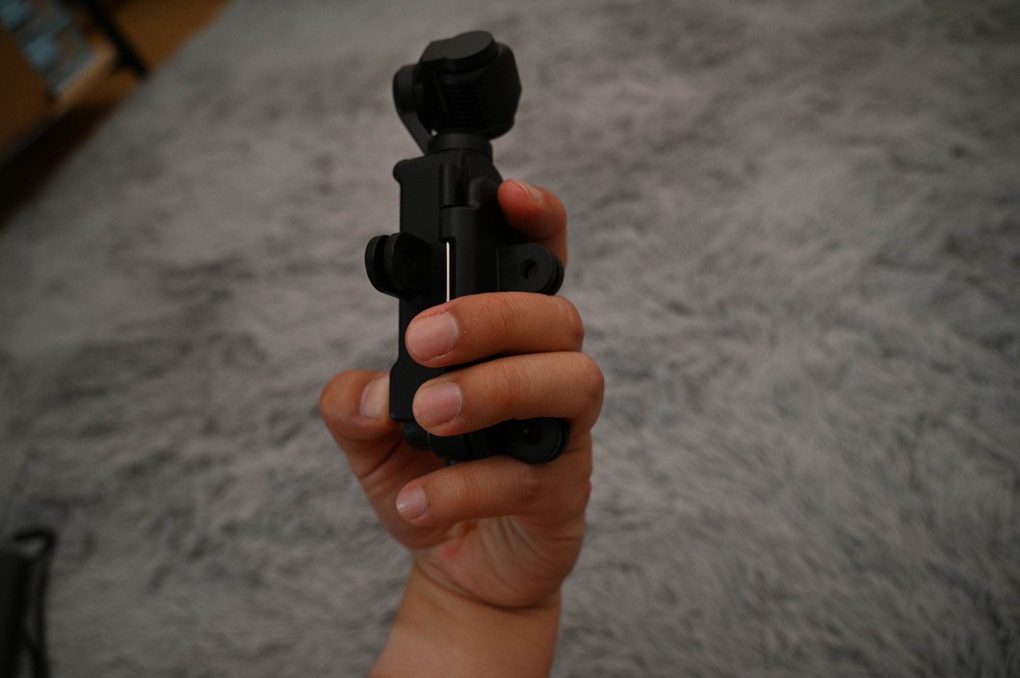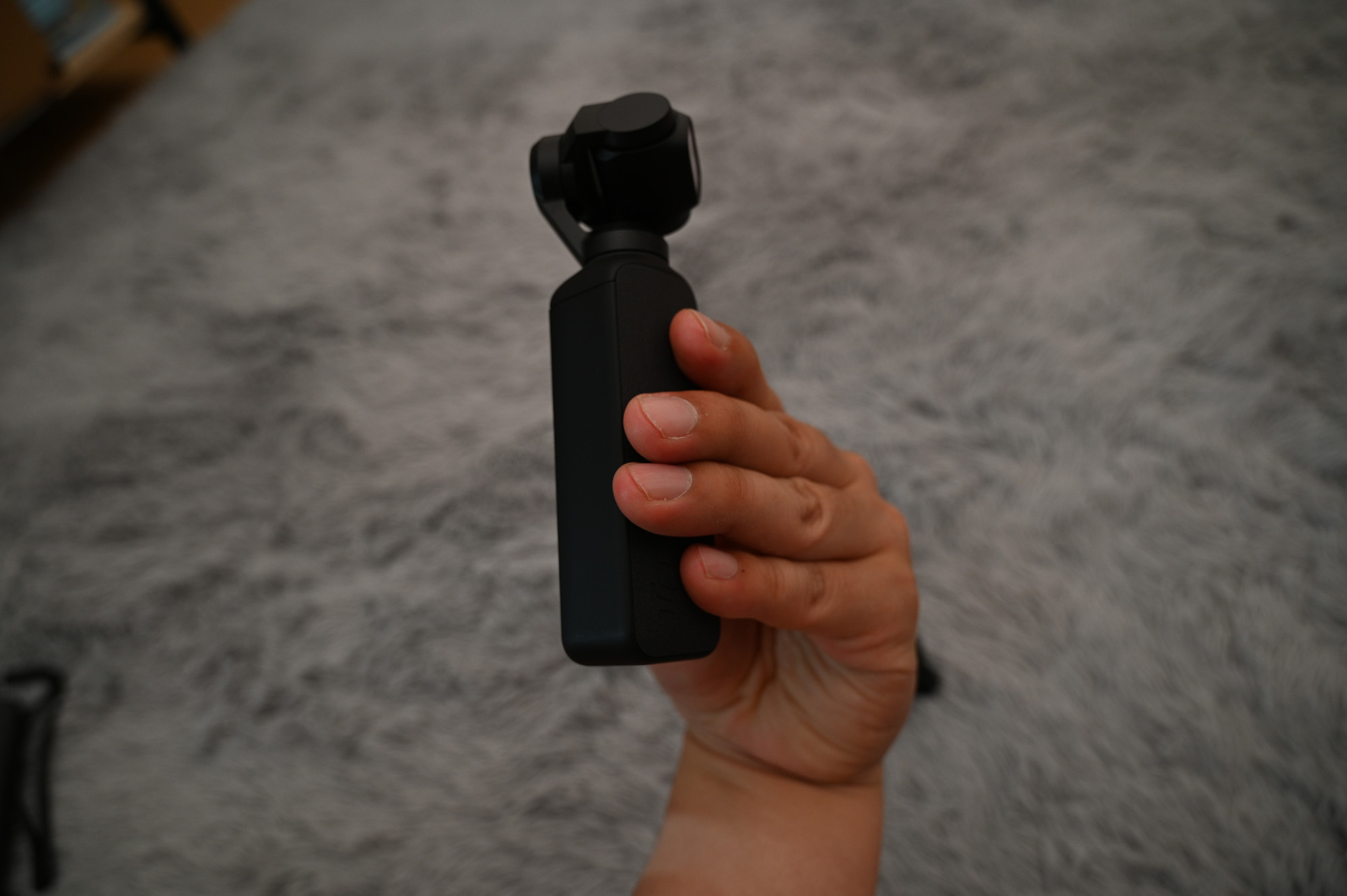 오즈모 포켓을 파지하는 방법이 달라졌습니다. 손에 착 감기는 느낌과 동시에, 손가락 사이에 걸칠 수 있는 무언가가 있다 보니까 안정감이 생겼습니다.