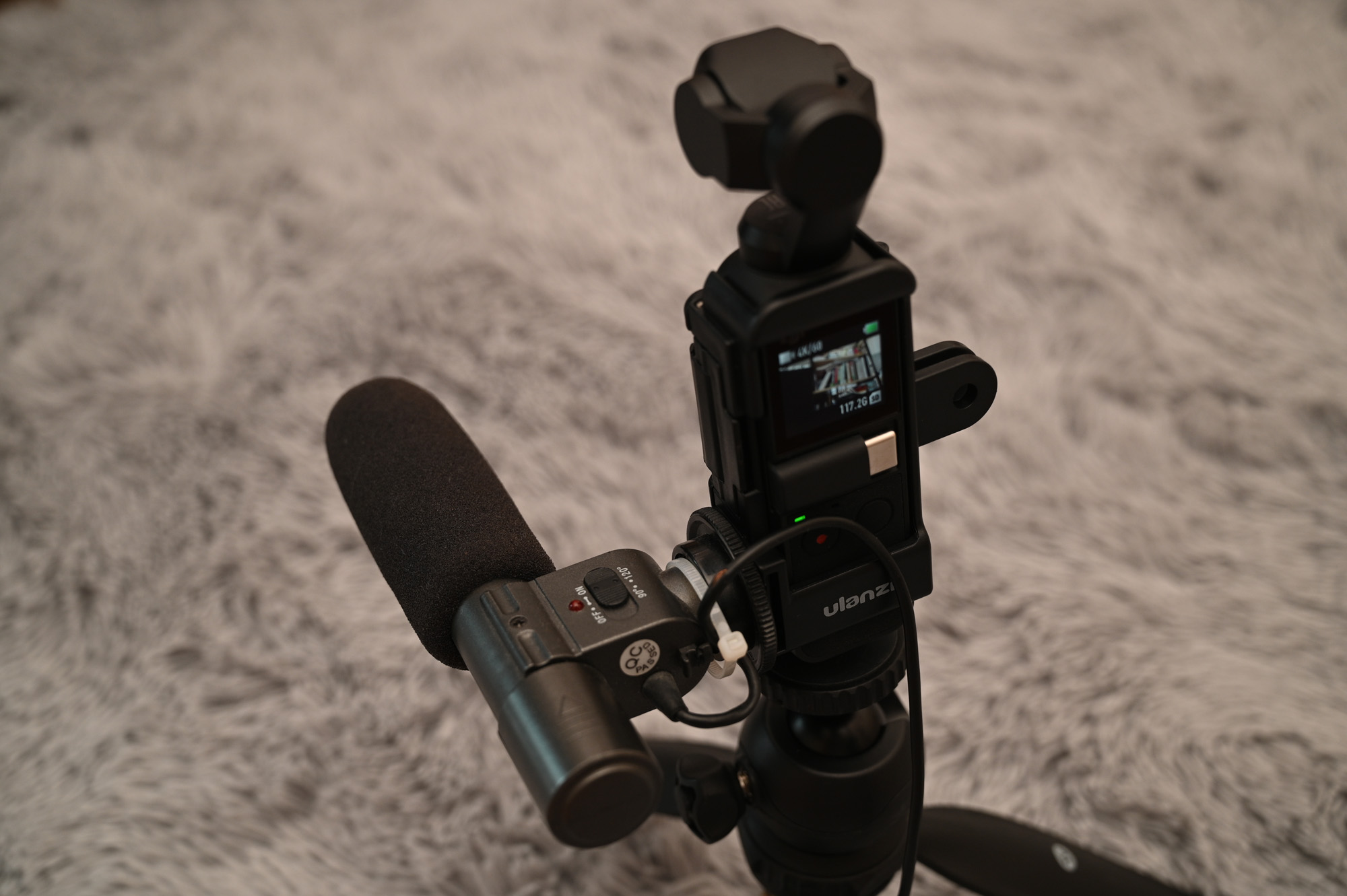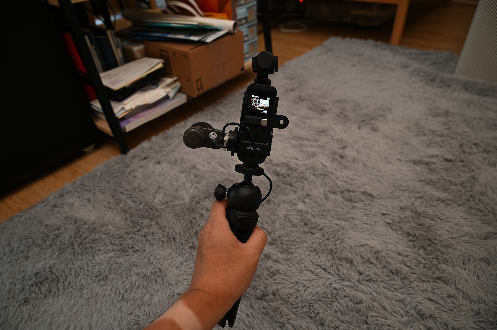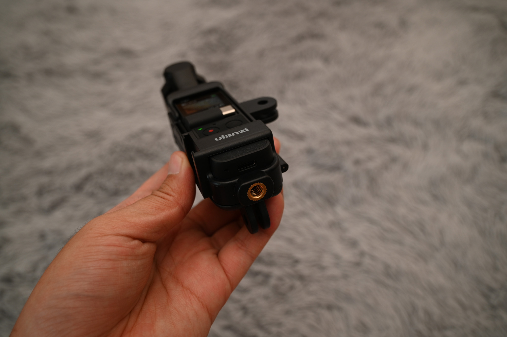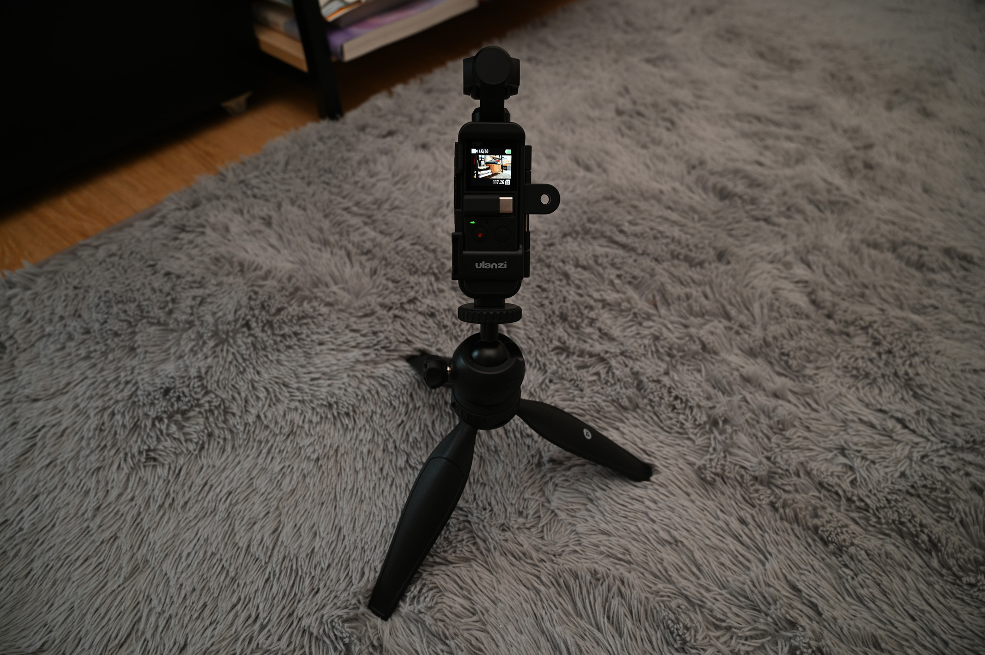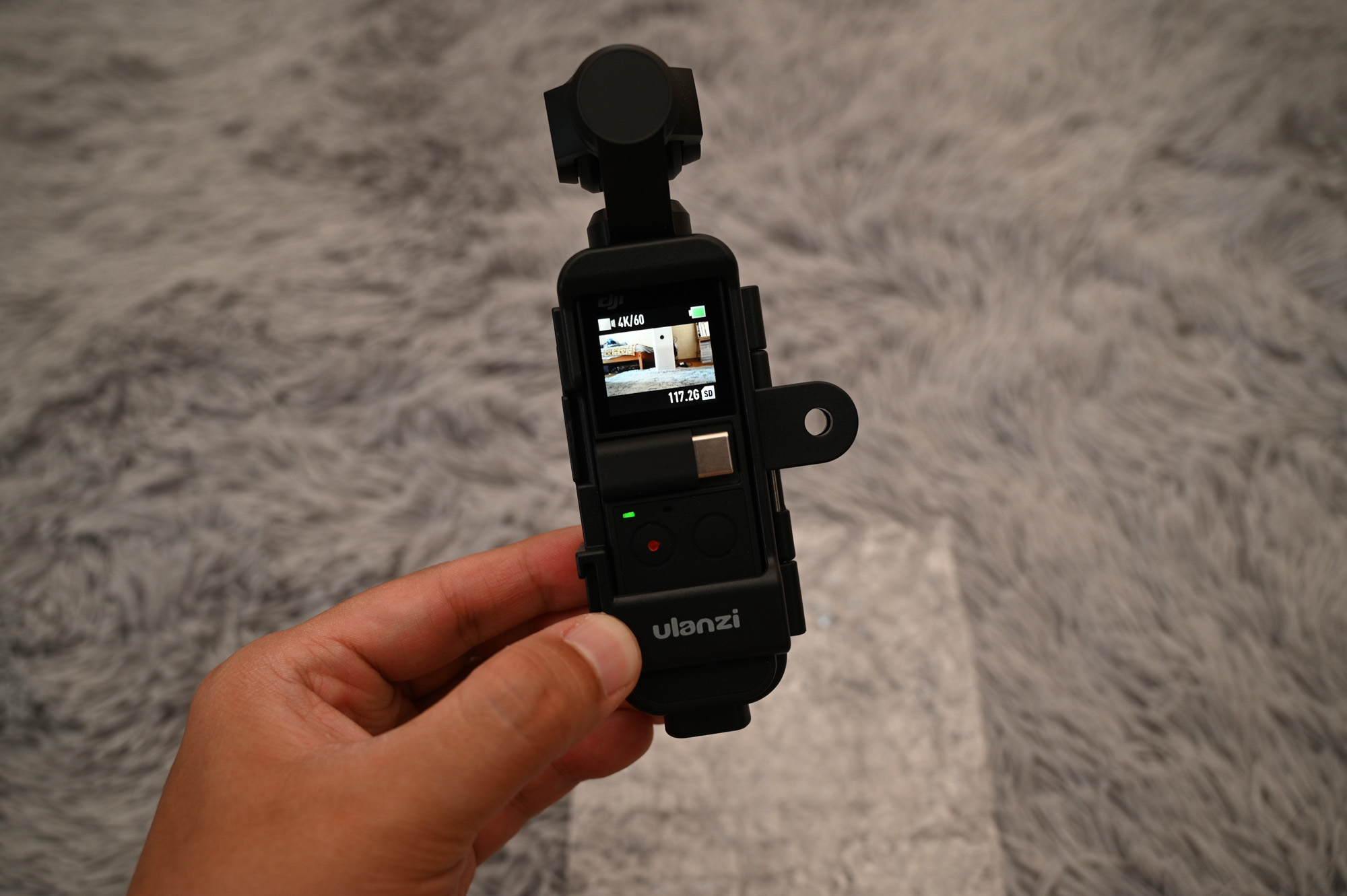 오즈모 포켓을 Ulanzi OP-7 케이지에 넣은 모습입니다.