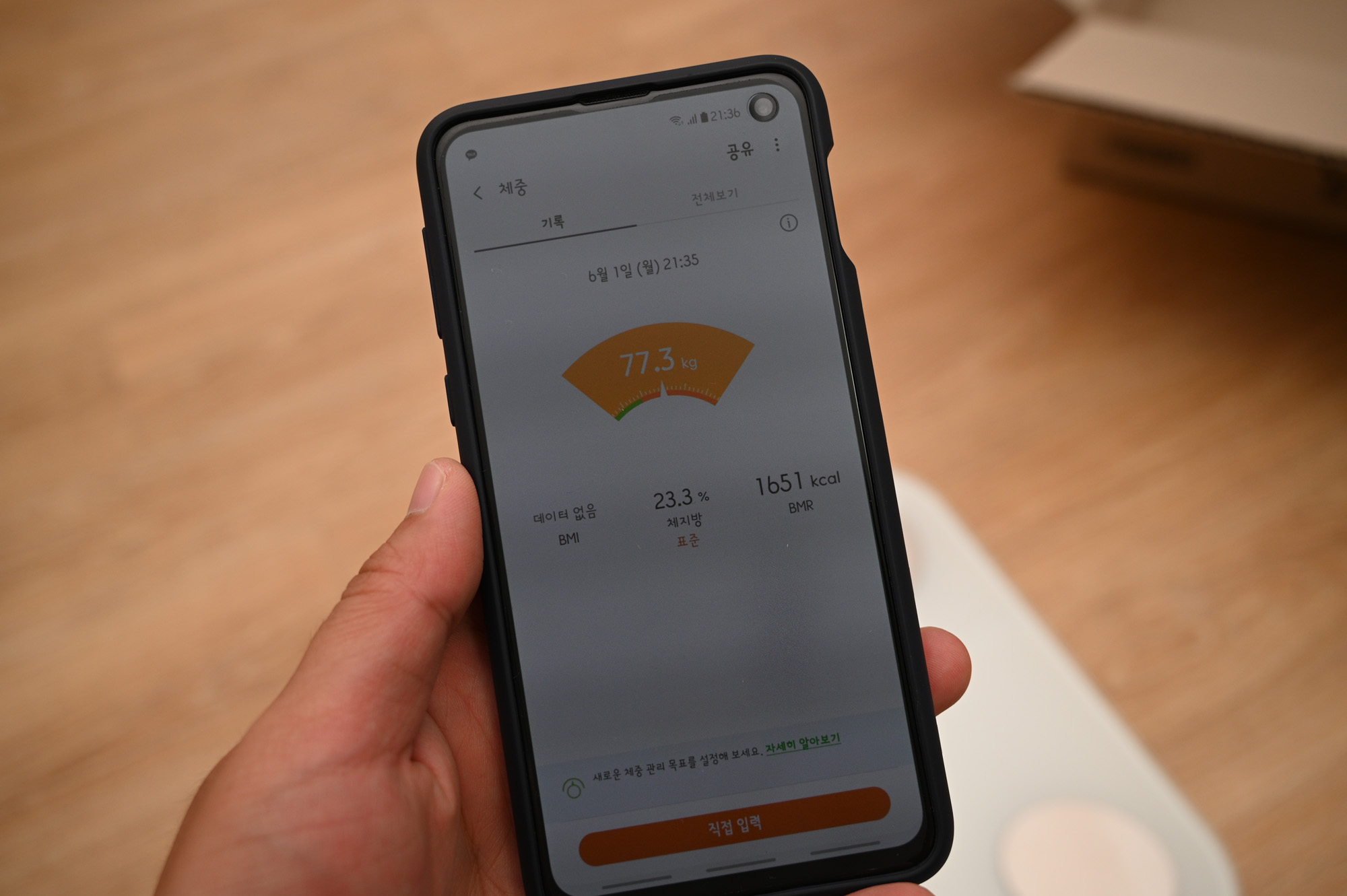 매일 저녁에 퇴근한 후 체중계에 올라갔습니다. 매일 한번씩 측정을 하니까 몸무게의 증감량을 한눈에 볼 수 있어서 괜찮았습니다.