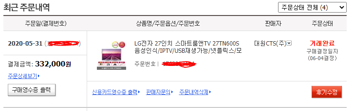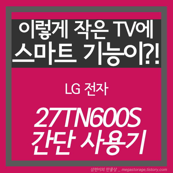 LG 27TN600S TV의 가장 큰 단점은 '작은 화면'입니다. 그리고 이 단점이 전부라고 생각됩니다. 작은 방에서 거주 중인 분들에겐 최상의 선택이라고 할 수 있습니다. 20인치 후반대에서 Full HD, 스마트TV, 깔끔한 디자인, 대기업 제품, 부가 기능을 가지고 있는 TV는 이 제품이 유일합니다. 33만 2천원 정도에 판매 중이지만 으뜸 효율 환급제도로 10%를 환급 받으면 33,200원을 제외하고 약 30만원 극 초반대에 구입할 수 있습니다.