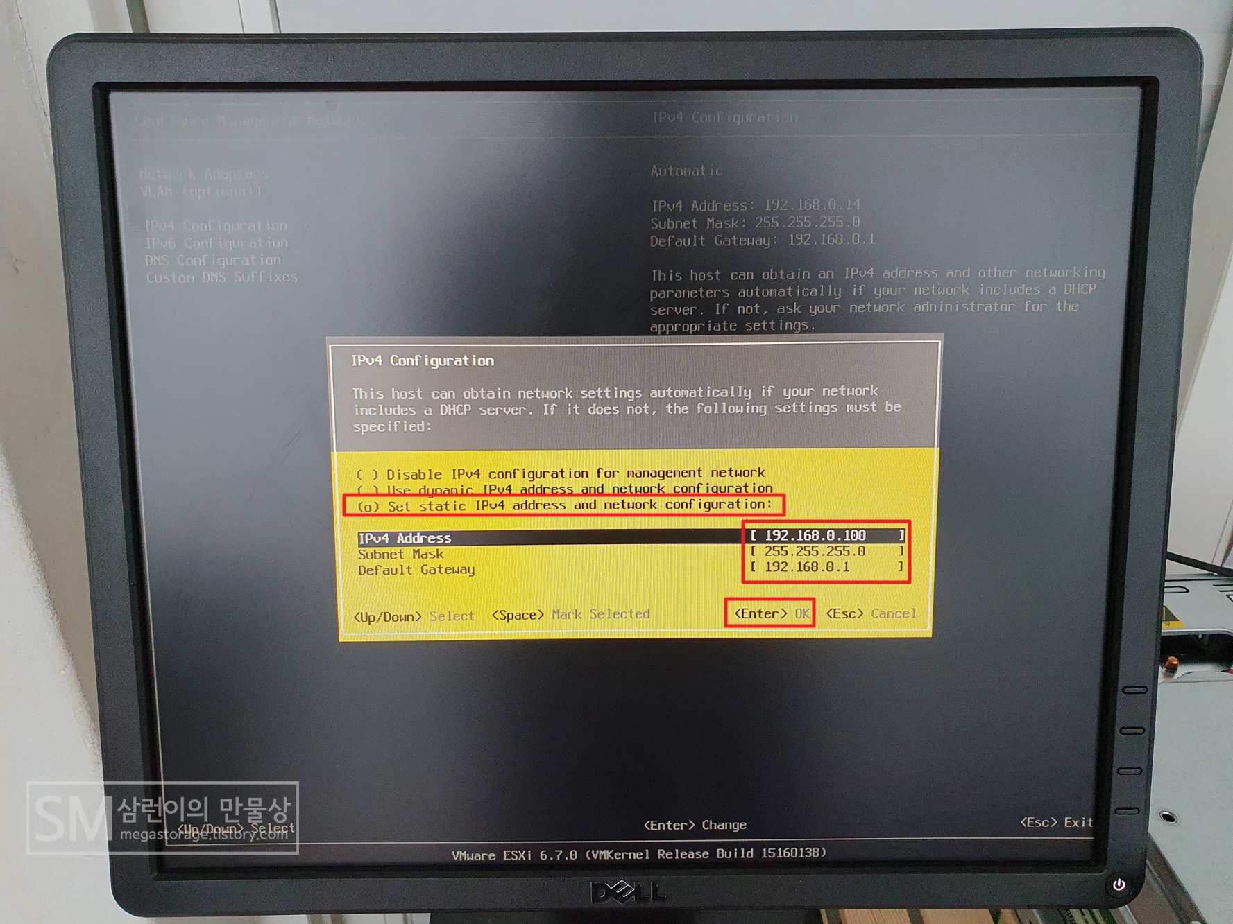 ESXi의 IP 주소 변경하기