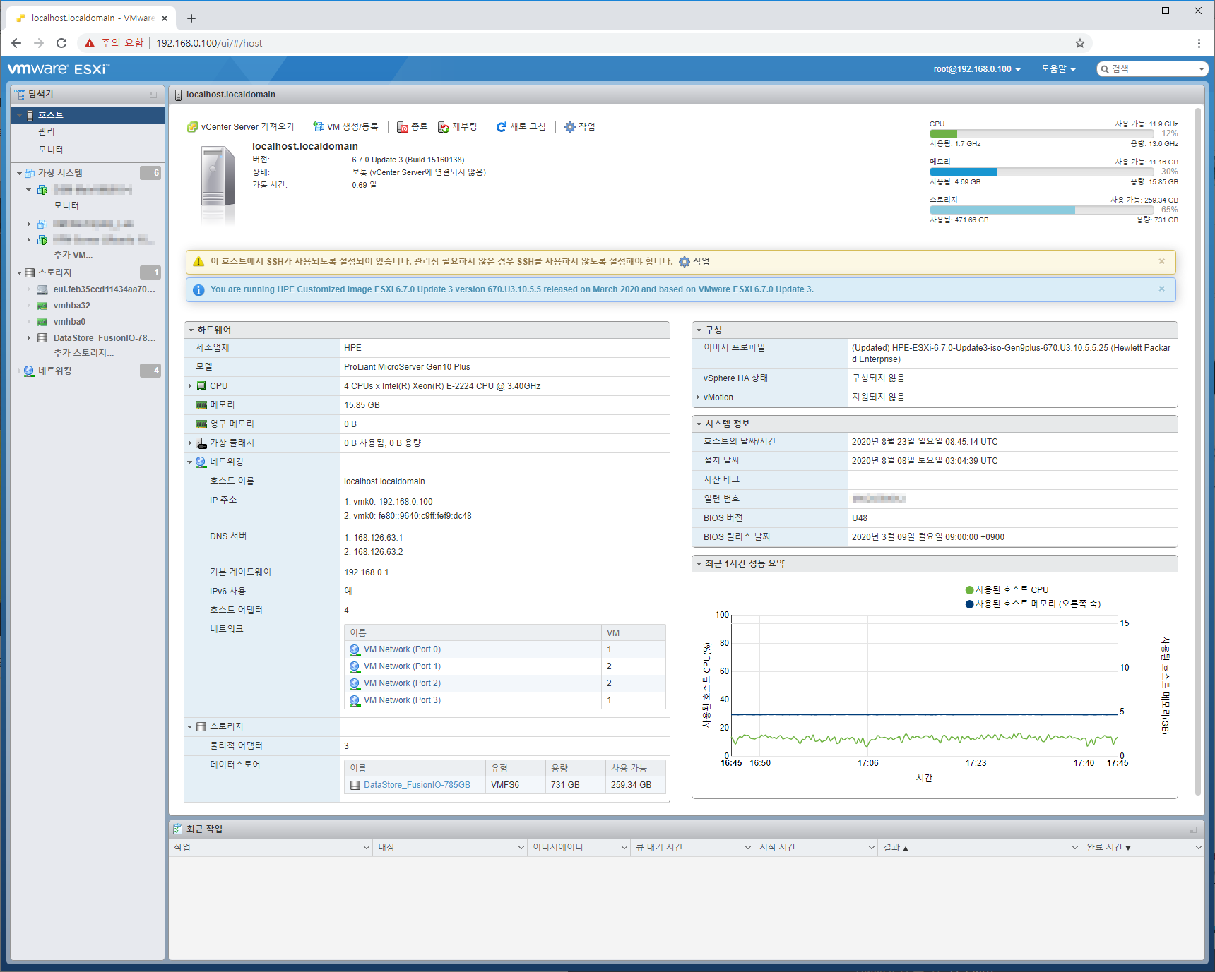 - ESXi 버전 : ESXi 6.7 Update 3 (HPE Gen9 및 그 이상 시리즈용)