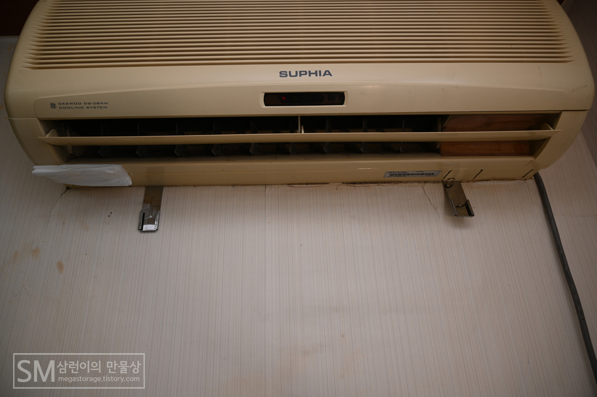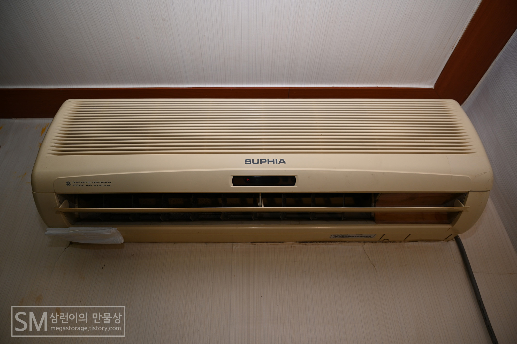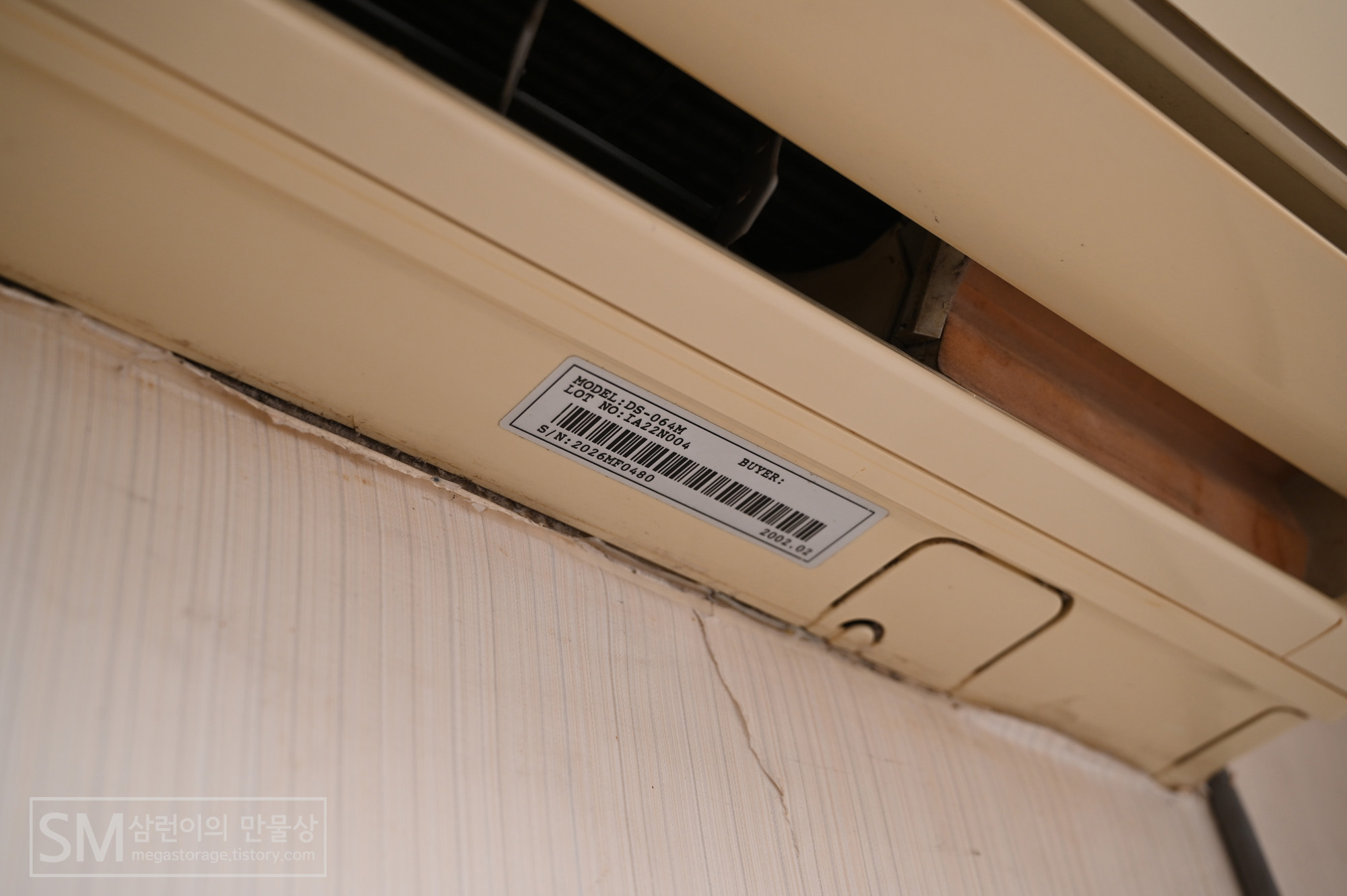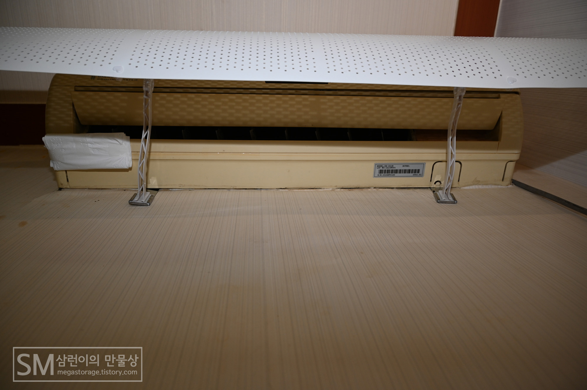 우선, 윈드바이저를 설치할 에어컨입니다. 2002년 2월에 생산된 대우 수피아(Daewoo SUPHIA) DS-064M 입니다. 정말 오래된 에어컨입니다. 찬바람 정말 잘 나와서 불평불만 없이 잘 쓰고 있습니다.