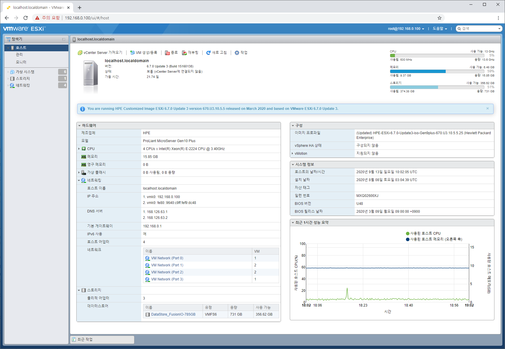 ESXi 6.7 U3를 약 22일 동안 무중단 구동 중입니다.