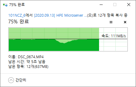 약 3기가 정도 되는 파일을 윈도우10 데스크탑에서 SAMBA로 전송해보니 1Gbe 기준으로 거의 최대 속도로 뽑아줍니다.