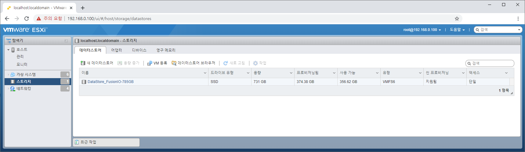 - 기타 드라이브 : Fusion-io ioDrive2 785GB (ESXi 데이터스토어)