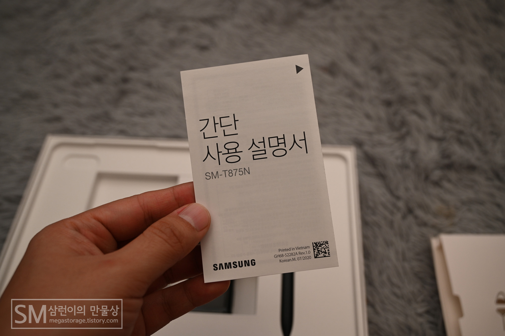 박스의 측면에는 모델명, 제조년월 그리고 기타 인증 내용들을 볼 수 있습니다. 제가 구입한 태블릿은 갤럭시 탭 S7 LTE 자급제 모델이기 때문에 SM-T875N 입니다.