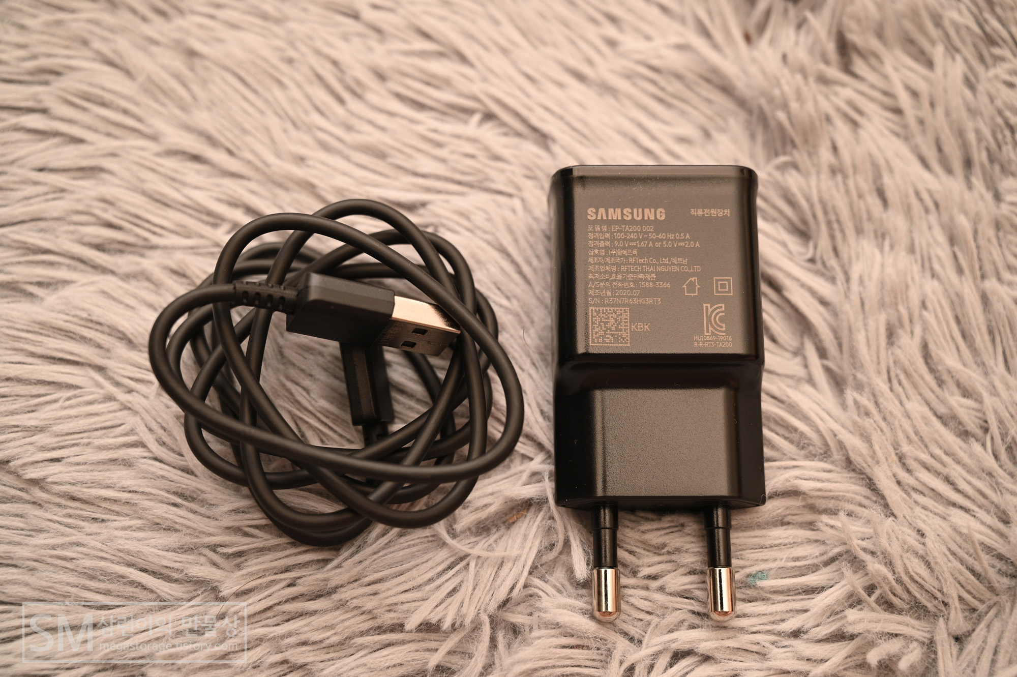 전원 아답터는 삼성전자 EP-TA200가 들어있습니다. 최대 약 15W(9V * 1.67A) 출력을 내줍니다. 갤럭시 탭 S7은 최대 45W으로 충전할 수 있는데...? 제품 가격이 얼마짜린데... 15W 고속 충전기를 넣어주는 것은 살짝 실망스럽습니다.