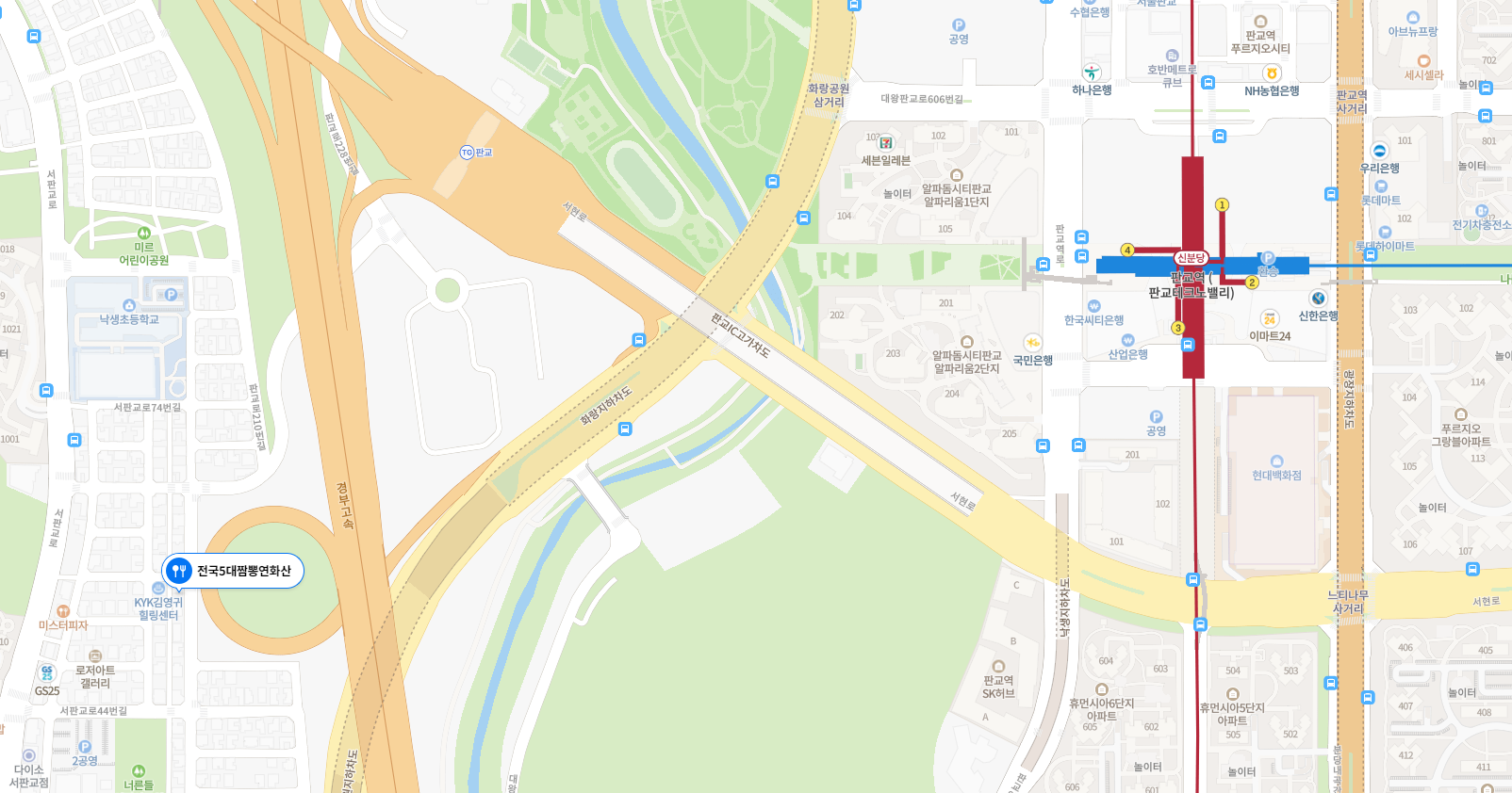 판교역 기준으로 경부 고속도로를 지난 서쪽, 그러니까 서판교의 주택가에 위치하고 있습니다. 주차가 힘드니 차를 가지고 가실땐 참고하시기 바랍니다. (도로변에 노상 주차된 차량이 매우 많았음)