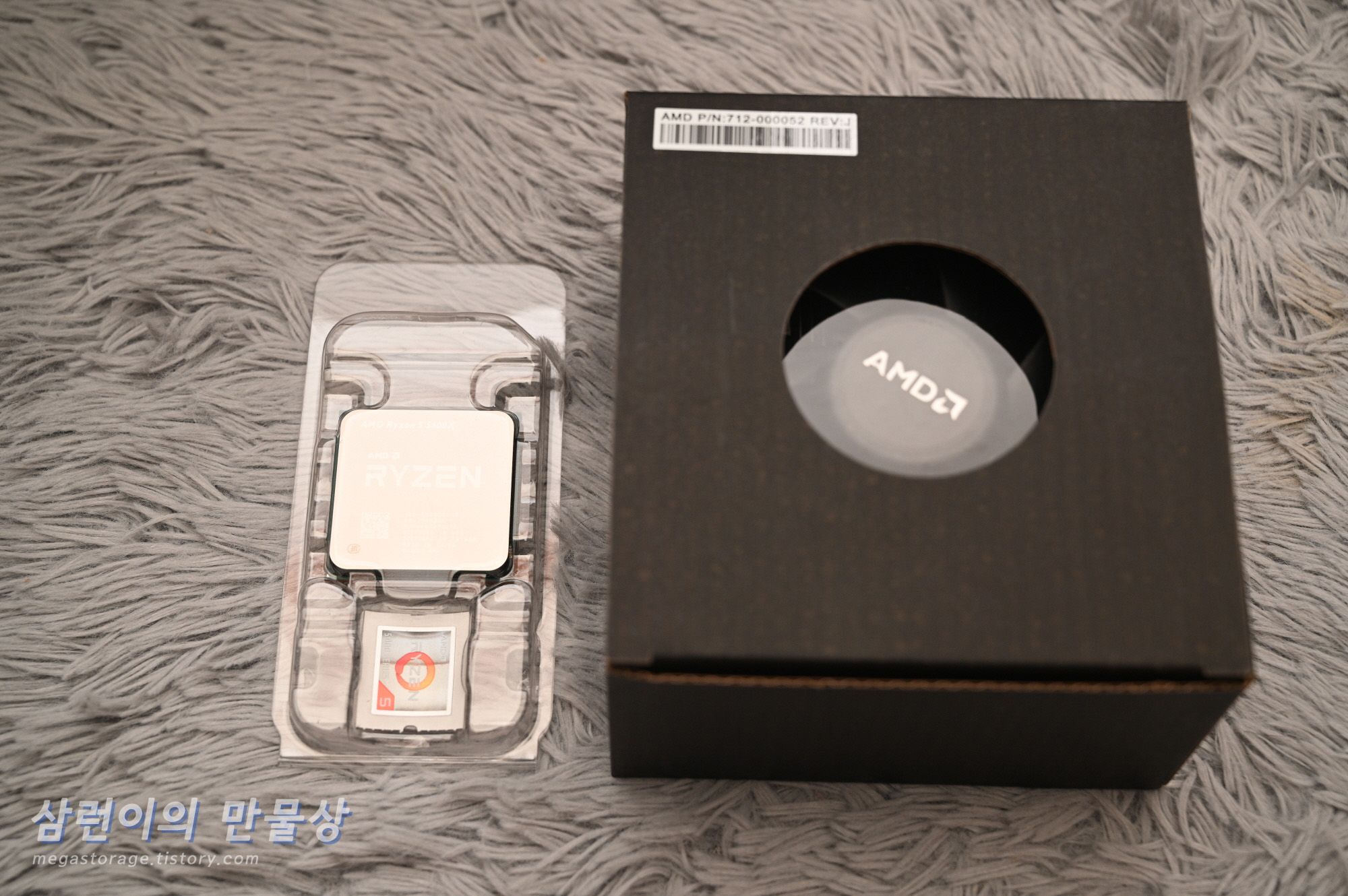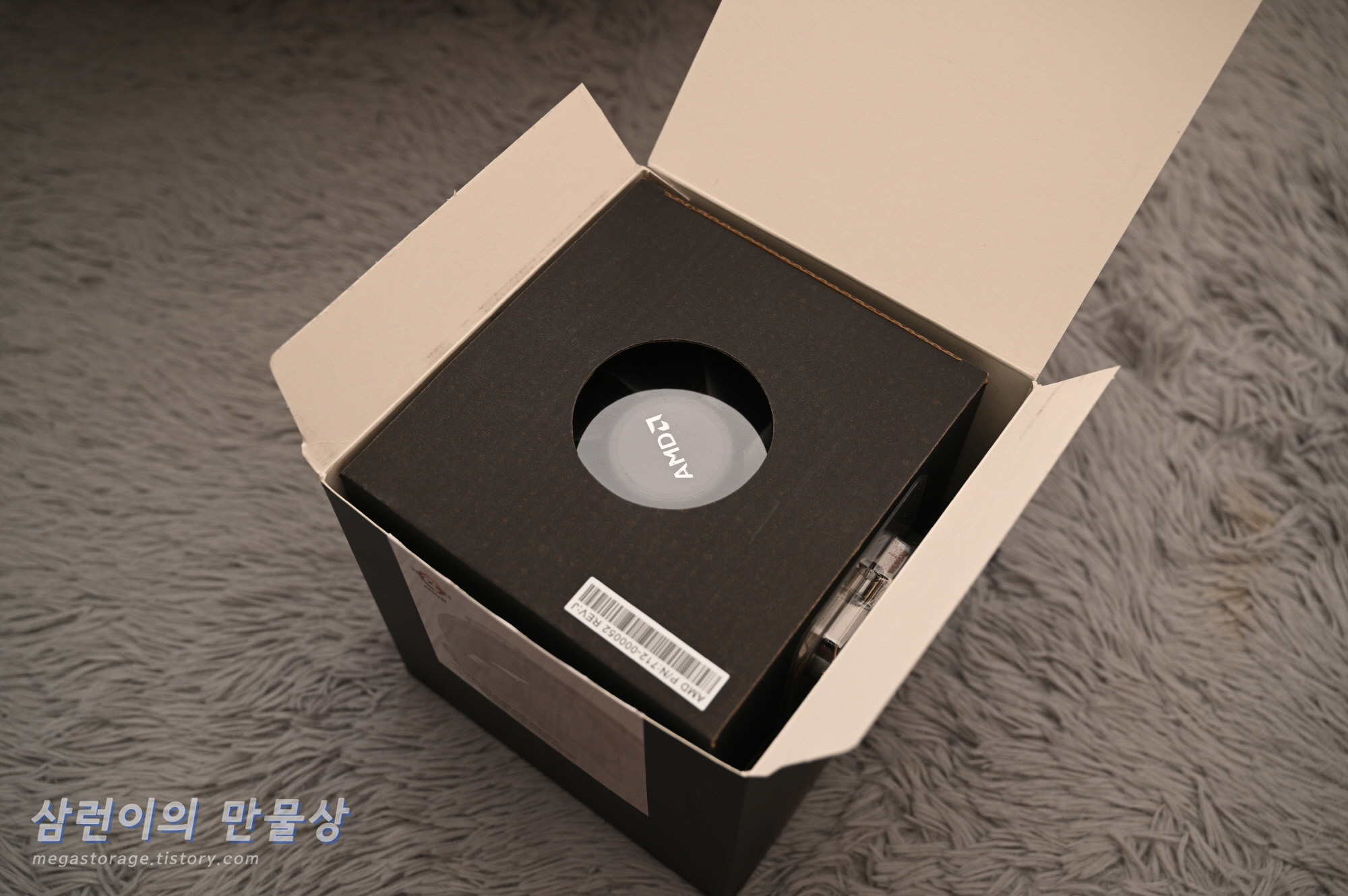 AMD 라이젠 5600X 멀티팩 입니다. 멀티팩은 박스의 겉부분에 아름다운(?) 로고와 그림들이 없고 위 사진처럼 검정 박스입니다.