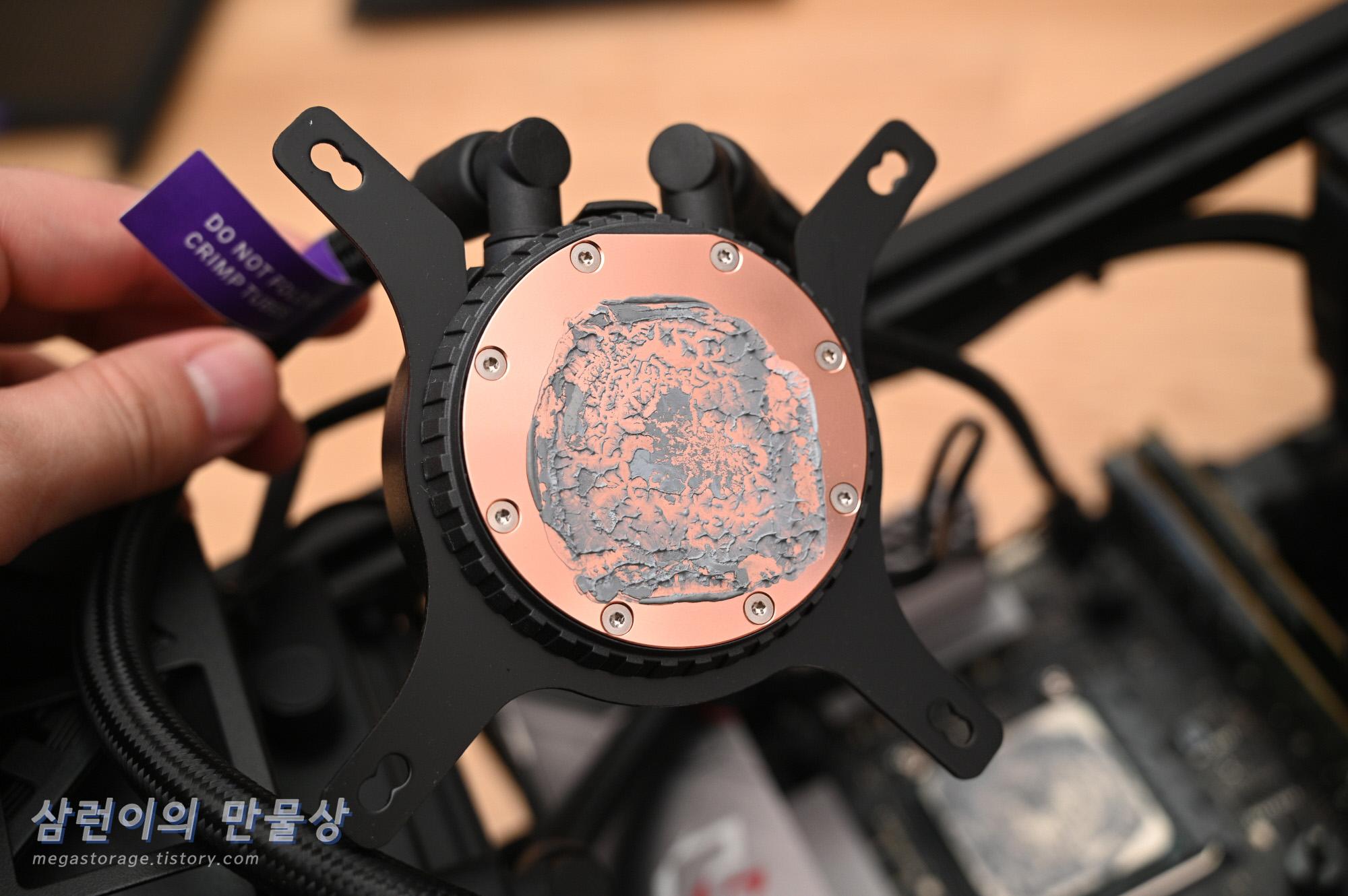 써멀 구리스를 새롭게 바를 것이기 때문에, 펌프에 묻은 써멀 구리스도 깨끗하게 닦아냅니다.