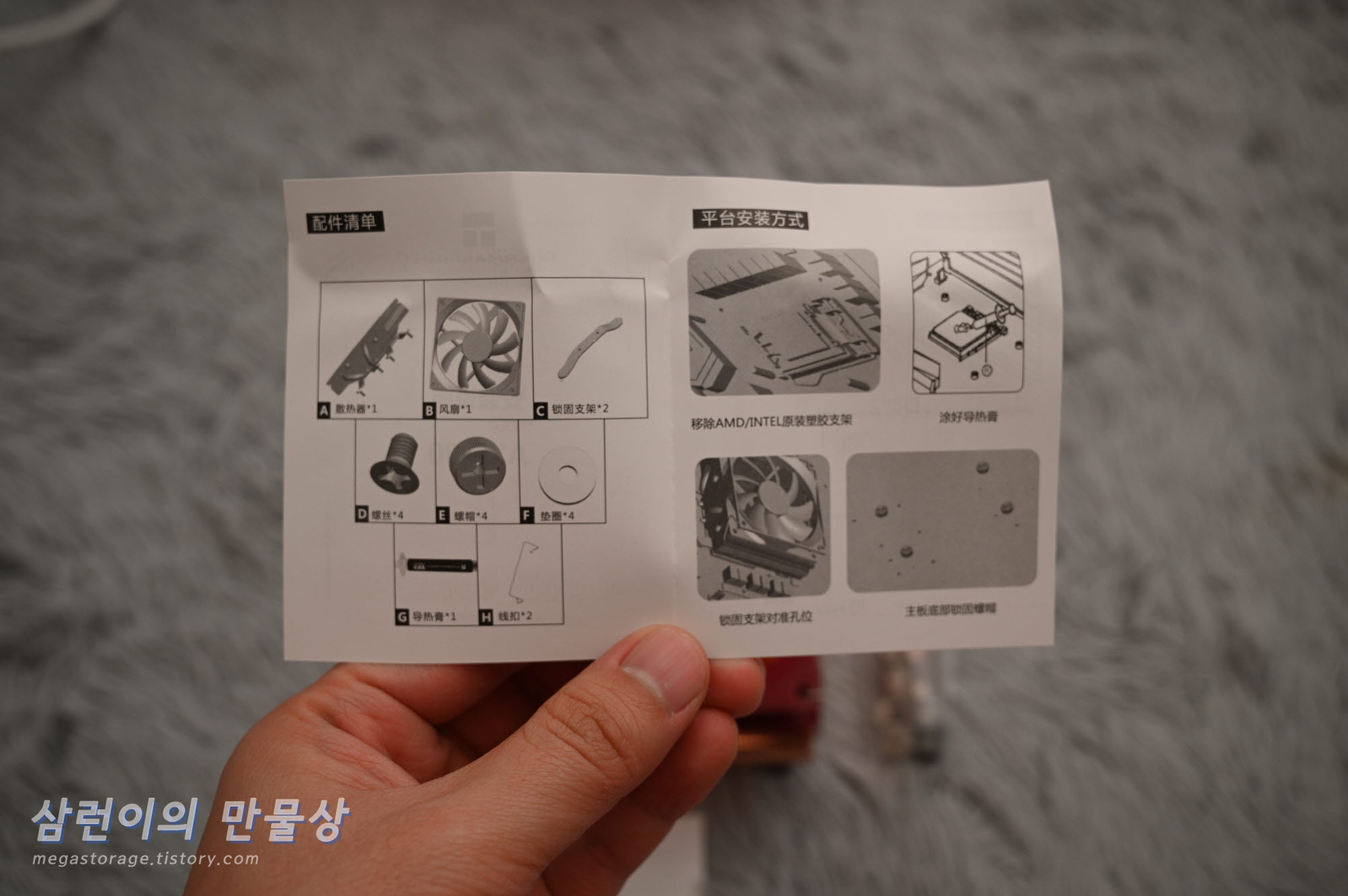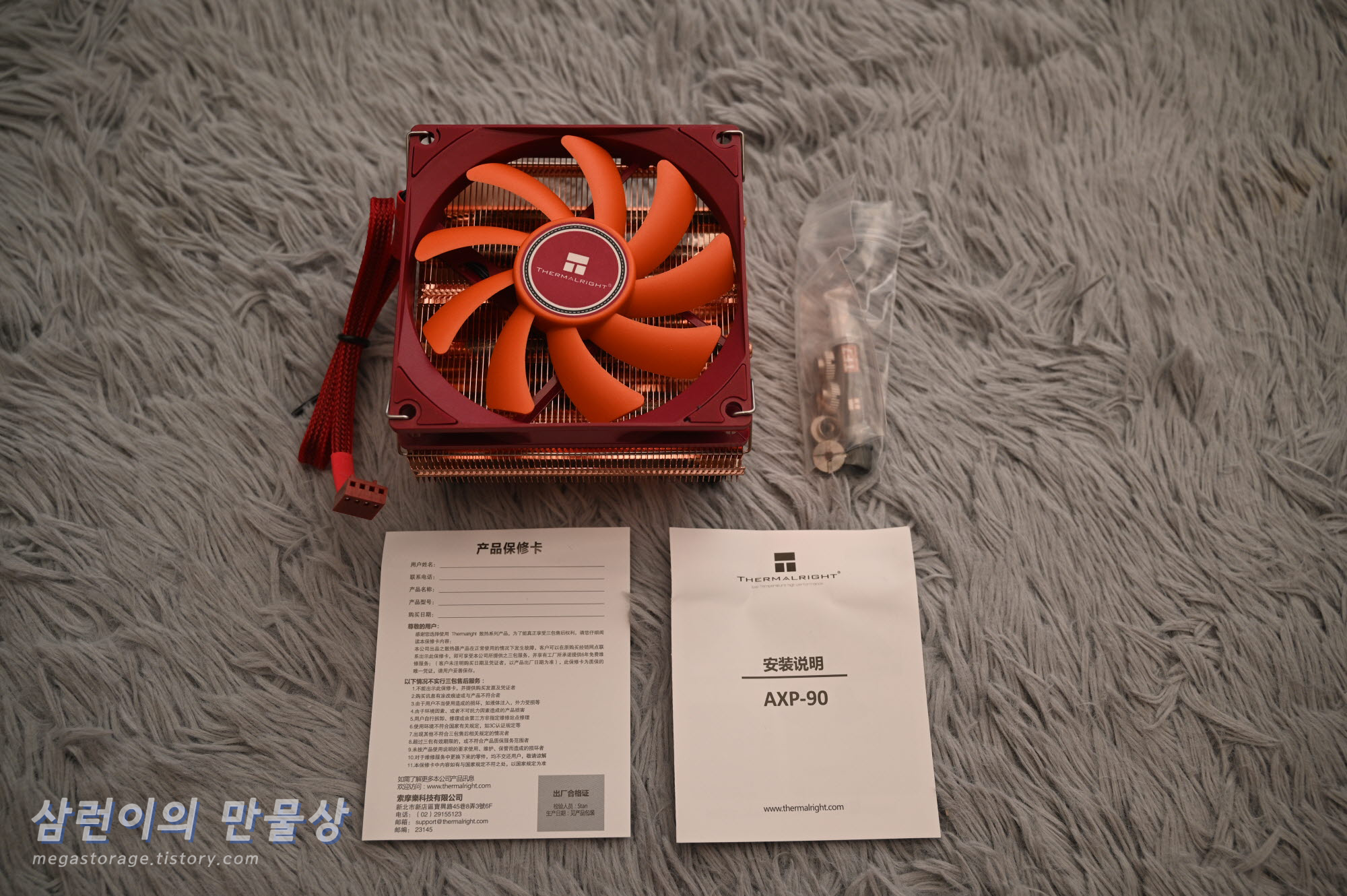 구성품입니다. 쿨러, 부품, 제품보증서 및 설명서 입니다.