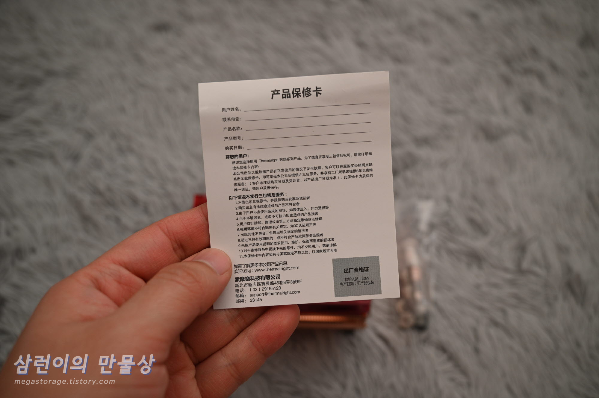 제품보증서는 별 의미가.... 없으니 그대로 넣어두도록 합니다.