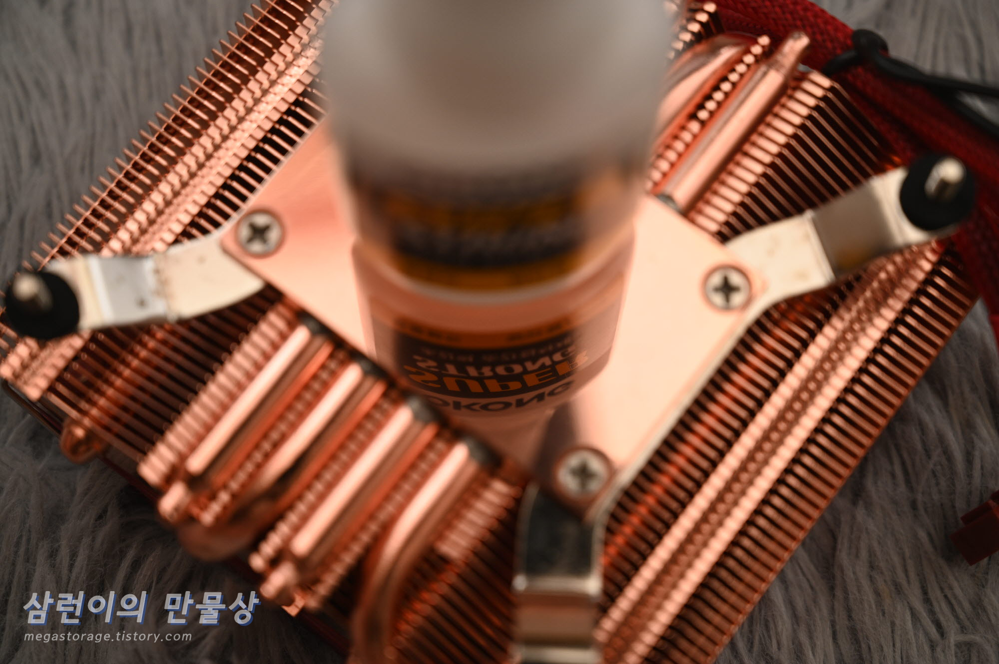 먼저 쿨러의 상단입니다. 녹투아 디자인과 거의 유사합니다. 근데 색상이 살짝 마음에 안듭니다. 역시.. 모니터로 본 것과 실제 받아본 제품의 색상은 다를 수 있습니다.