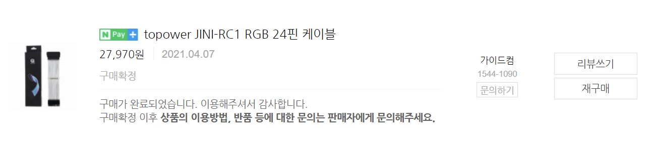 24핀 메인보드 전원 연장케이블을 찾다보니, RGB LED가 나오는 케이블이 있더라구요? 그래서 고민하다가 'topower JINI-RC1 RGB 24핀 케이블'을 구입했습니다. 8핀 CPU 전원 연장케이블은 쿠팡에서 싸게 팔길래 샀습니다. 이런 것도 쿠팡에 있다닠ㅋㅋㅋㅋㅋ 대박