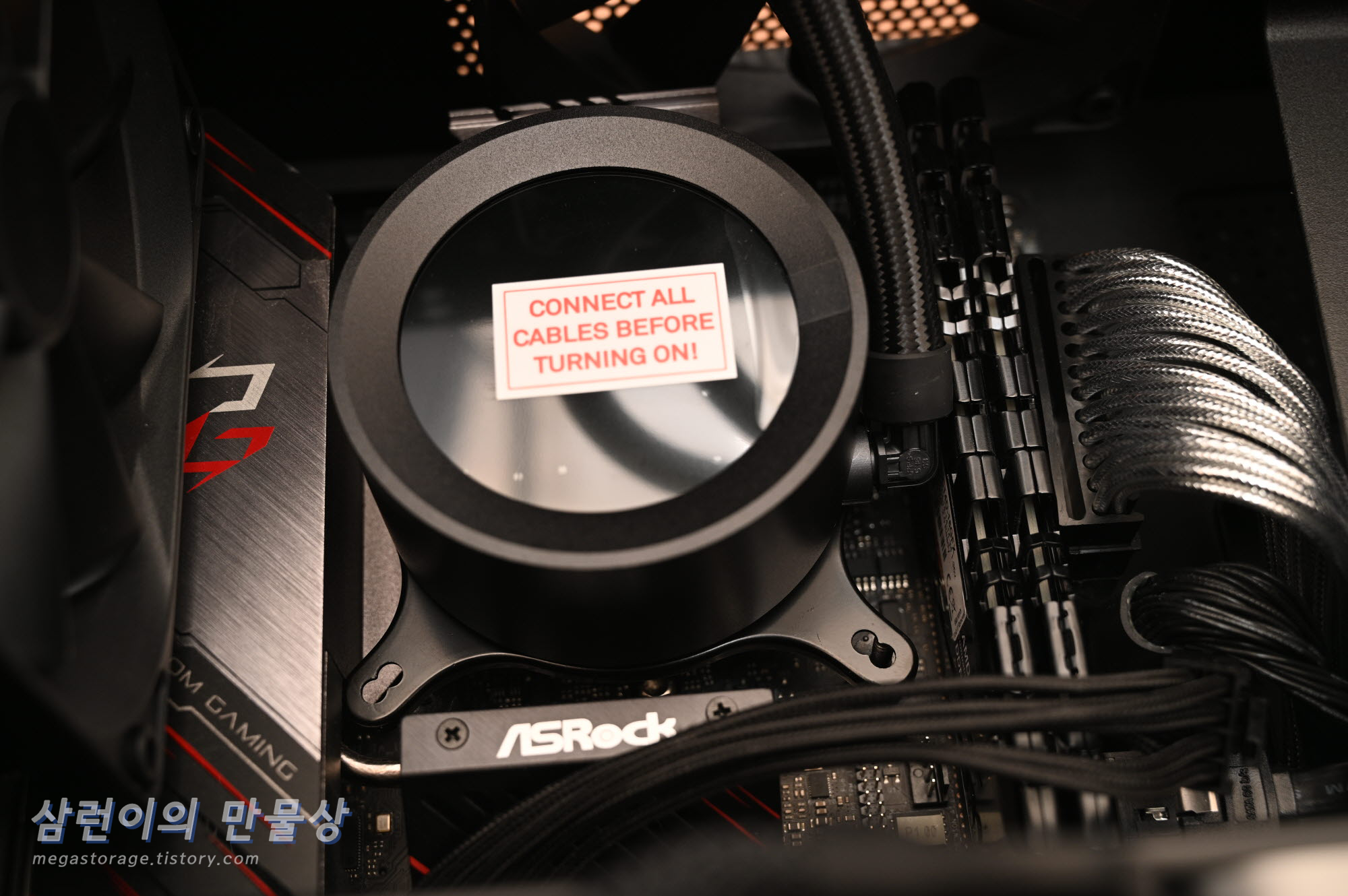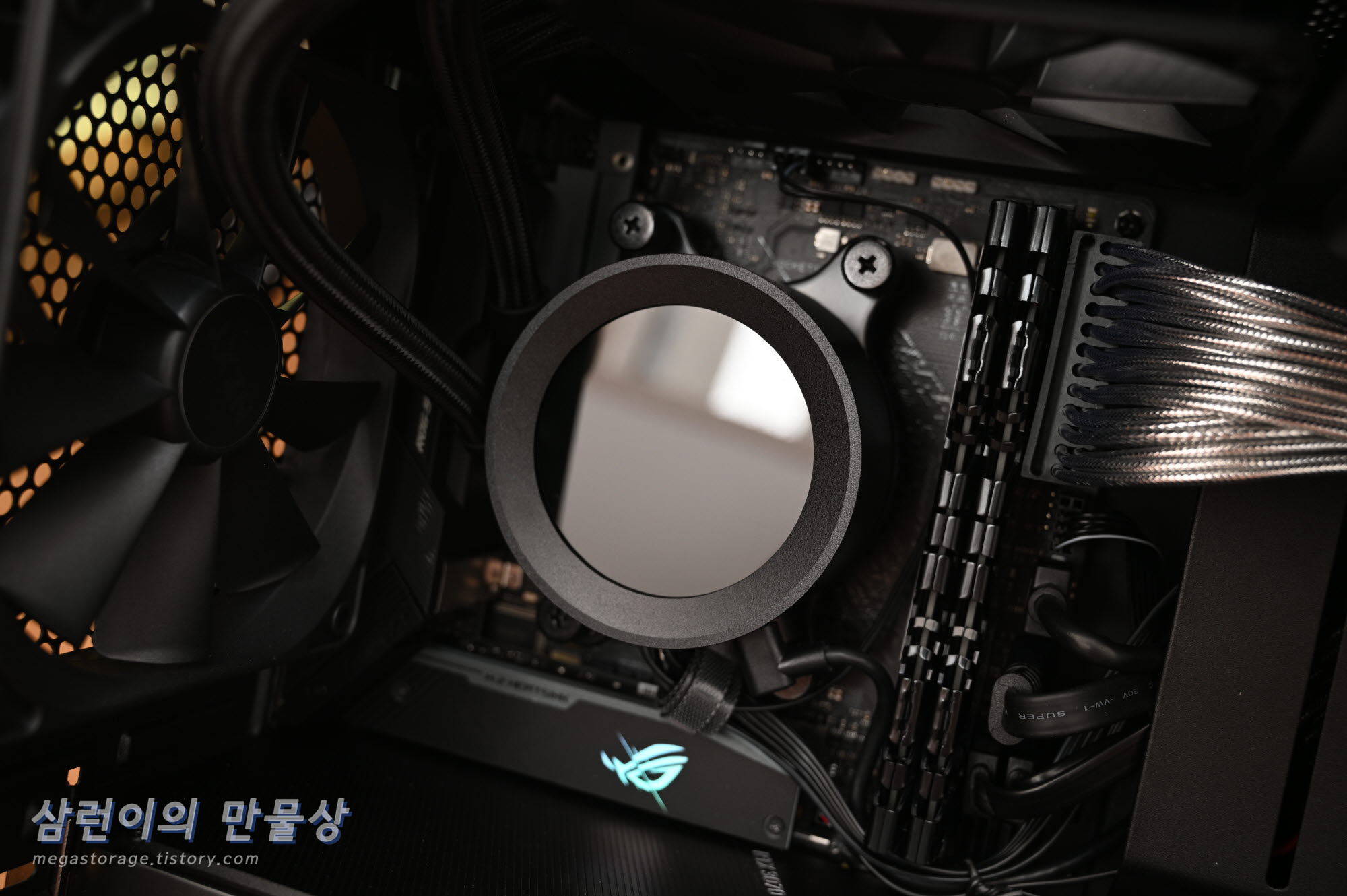 설치하느라 고생했던 NZXT 크라켄 Z63의 워터펌프가 보입니다.