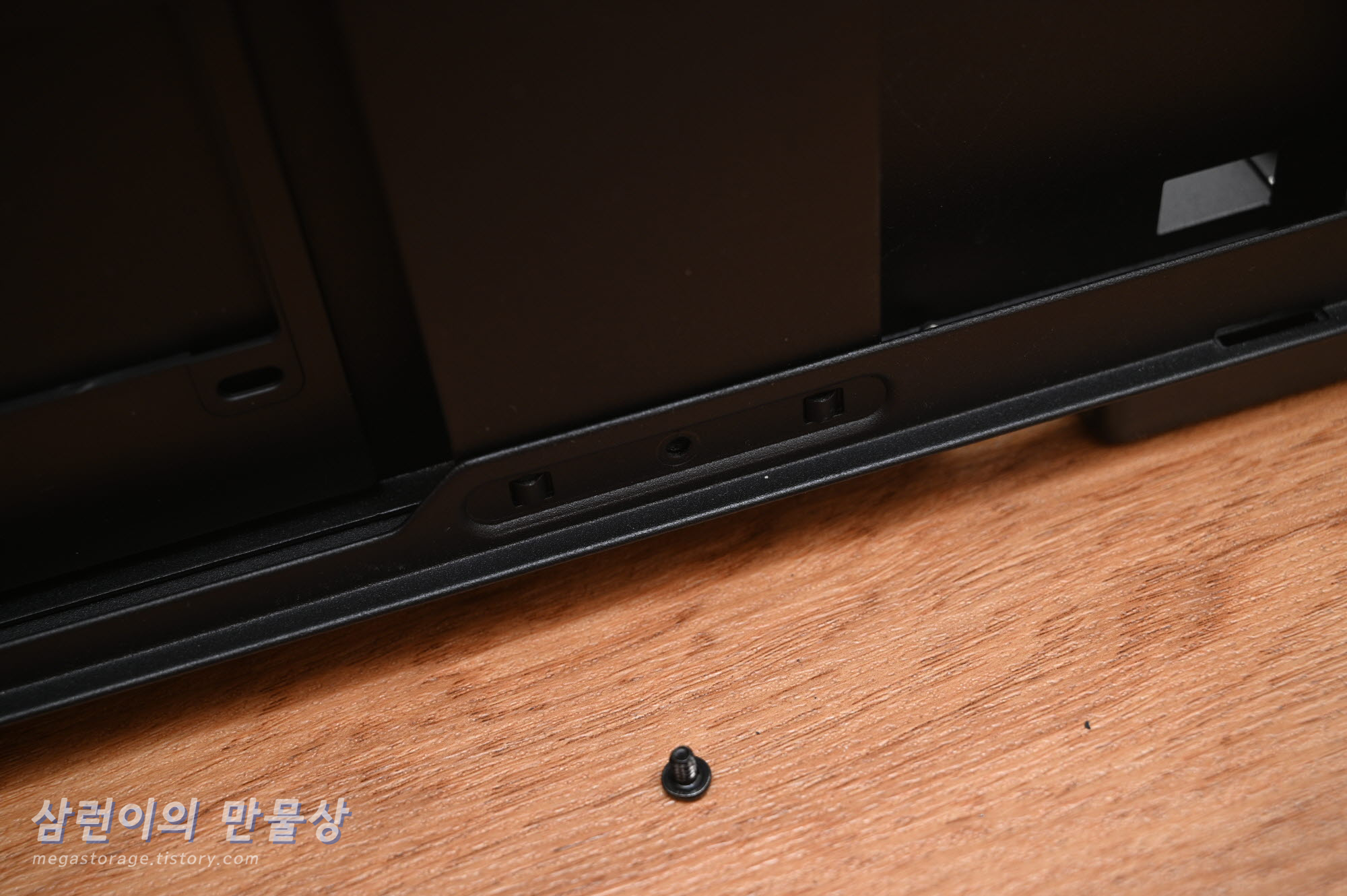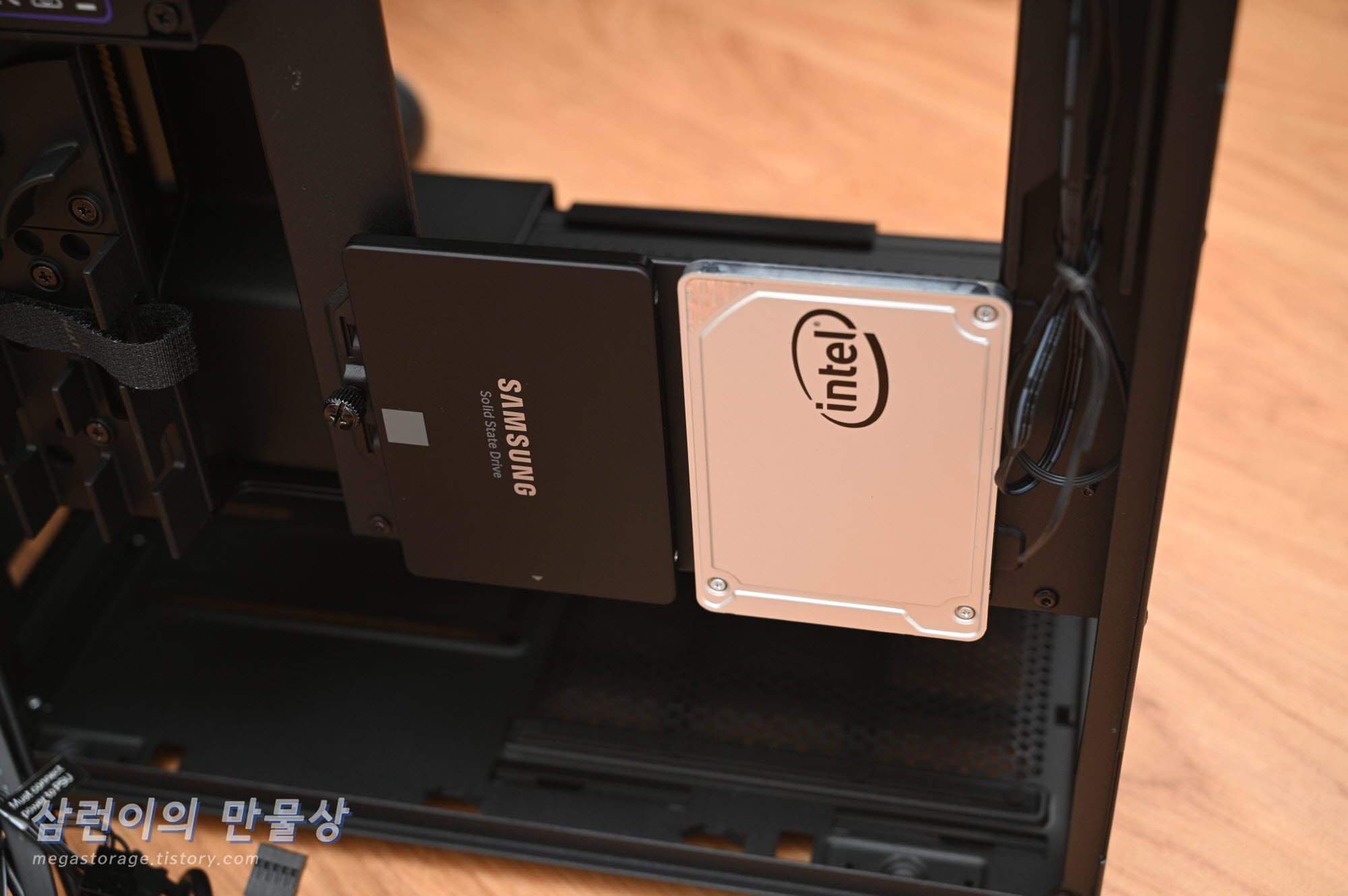 먼저 SSD를 장착해줍니다. 2.5인치 SSD 2개를 케이스 우측면 슬롯에 장착합니다.