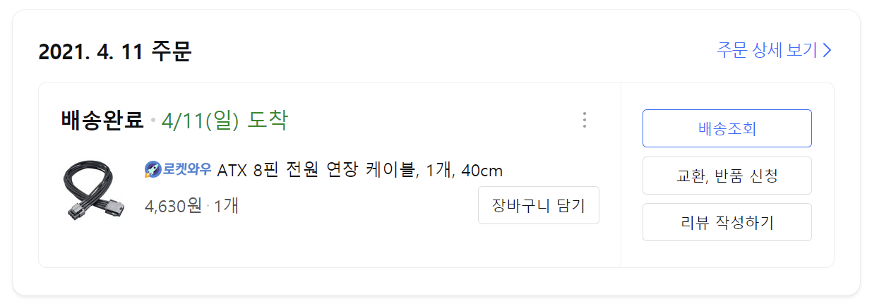 - 8핀 CPU 전원 연장케이블 : 4,630원
