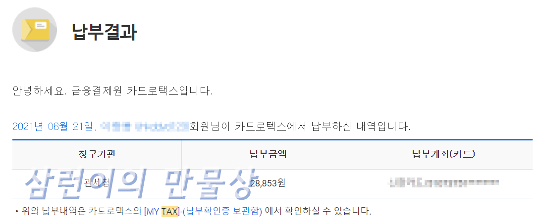 SSD는 전자제품으로 관세는 없고 '부가세 10%'만 납부하면 됩니다. 부가세는 28,853원 납부했습니다. 이렇게 구매 후 집까지 무사히 도착했습니다. 구매에 들어간 최종 금액은 아래와 같습니다.