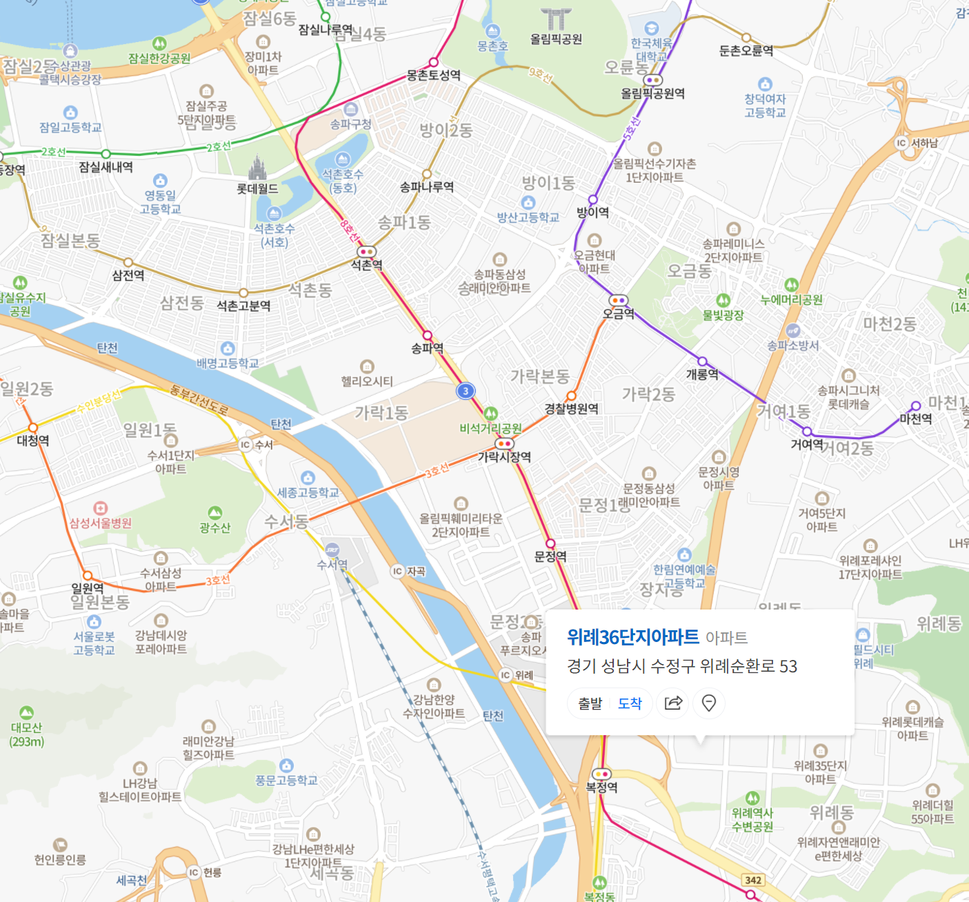 위례 A2-15BL 행복주택은 복정역 근처에 있습니다. 복정역에서 한 정거장만 위로 가면 서울특별시가 됩니다. 우측편엔 위례 스타필드가 있고 운동하기 좋은 탄천도 있습니다. 어쩌면 제2판교 행복주택보다 위례 행복주택이 인프라가 더 좋을 수 있겠네요.
