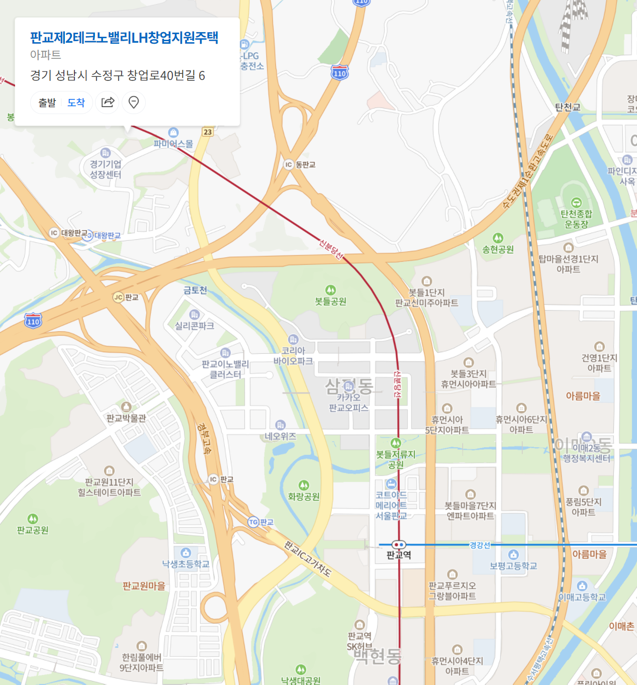 판교 제2테크노밸리 행복주택은 판교역과 많이 떨어진 곳에 위치하고 있습니다. 해당 행복주택이 있는 위치가 '제2판교'라고 불리는 곳이기도 합니다. 제가 근무하고 있는 회사가 제2판교에 있었기 때문에 더욱 더 좋았습니다. 해당 행복주택에 입주할 수 있다면 교통비, 주차비, 유류비 모두 절감할 수 있기 때문에 엄청난 이득입니다.