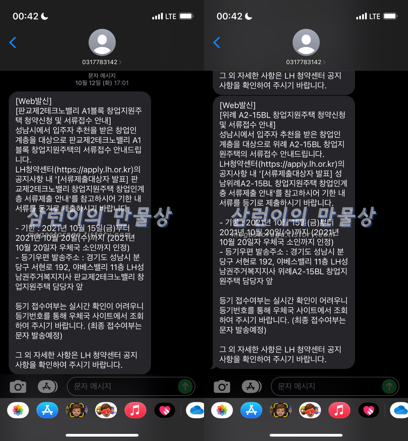 신청한 후 며칠이 지나니까 뭔가 정상적으로 진행 되는 것 같은 문자가 왔습니다.