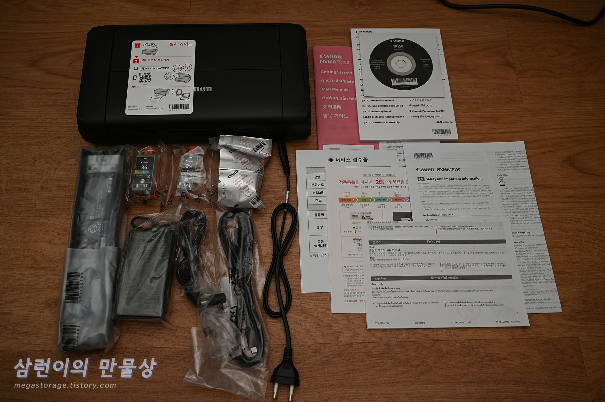 박스가 두개 입니다. 아래 박스는 TR150 프린터이며 위의 박스는 TR150을 보관 및 휴대할 수 있는 용도로 만들어진 전용 가방입니다. 5만원 상당이라고 하는데.. 그만한 값어치가 있긴 합니다. 같이 구입한 것은 아니고, 사은품으로 주길래 받았습니다.
