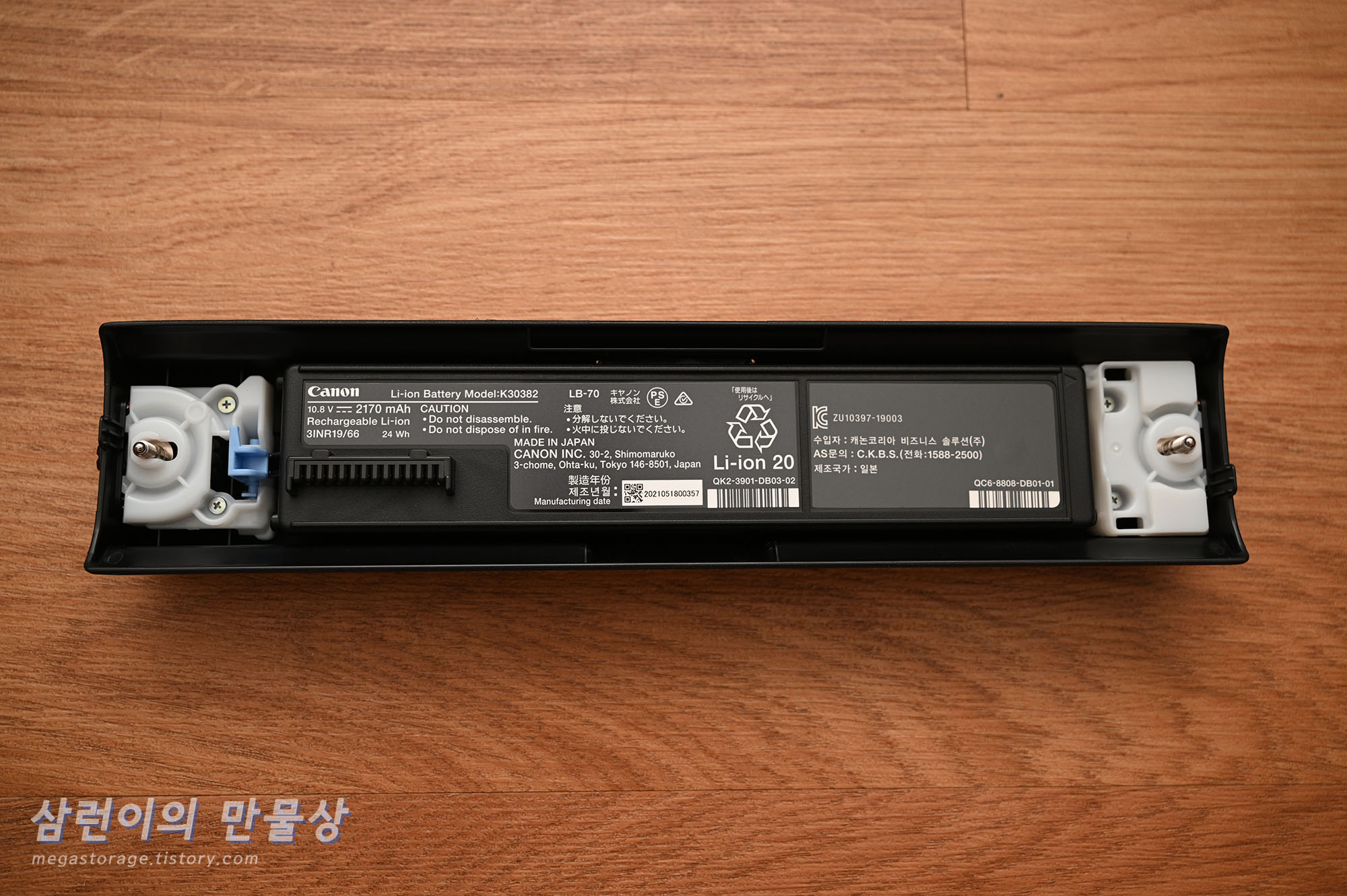 LK-72 전용 배터리입니다. 10.8V 전압의 2,170mAh 용량을 가지고 있습니다. 3.6V 전압의 2,170mAh 용량 배터리가 3개 직렬 연결되어 있다는 것을 알 수 있습니다.