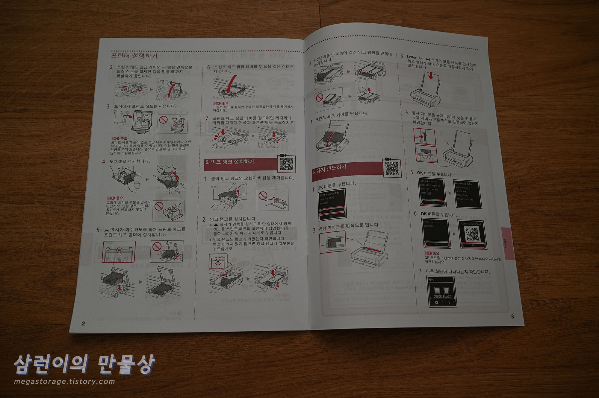 잉크 카트리지와 프린트 헤드가 처음부터 분리되어 있는 상태라서, 프린트 헤드와 잉크 카트리지를 장착하는 방법을 설명하고 있습니다. 이 부분은 필히(!!) 설명서를 보셔야 합니다.
