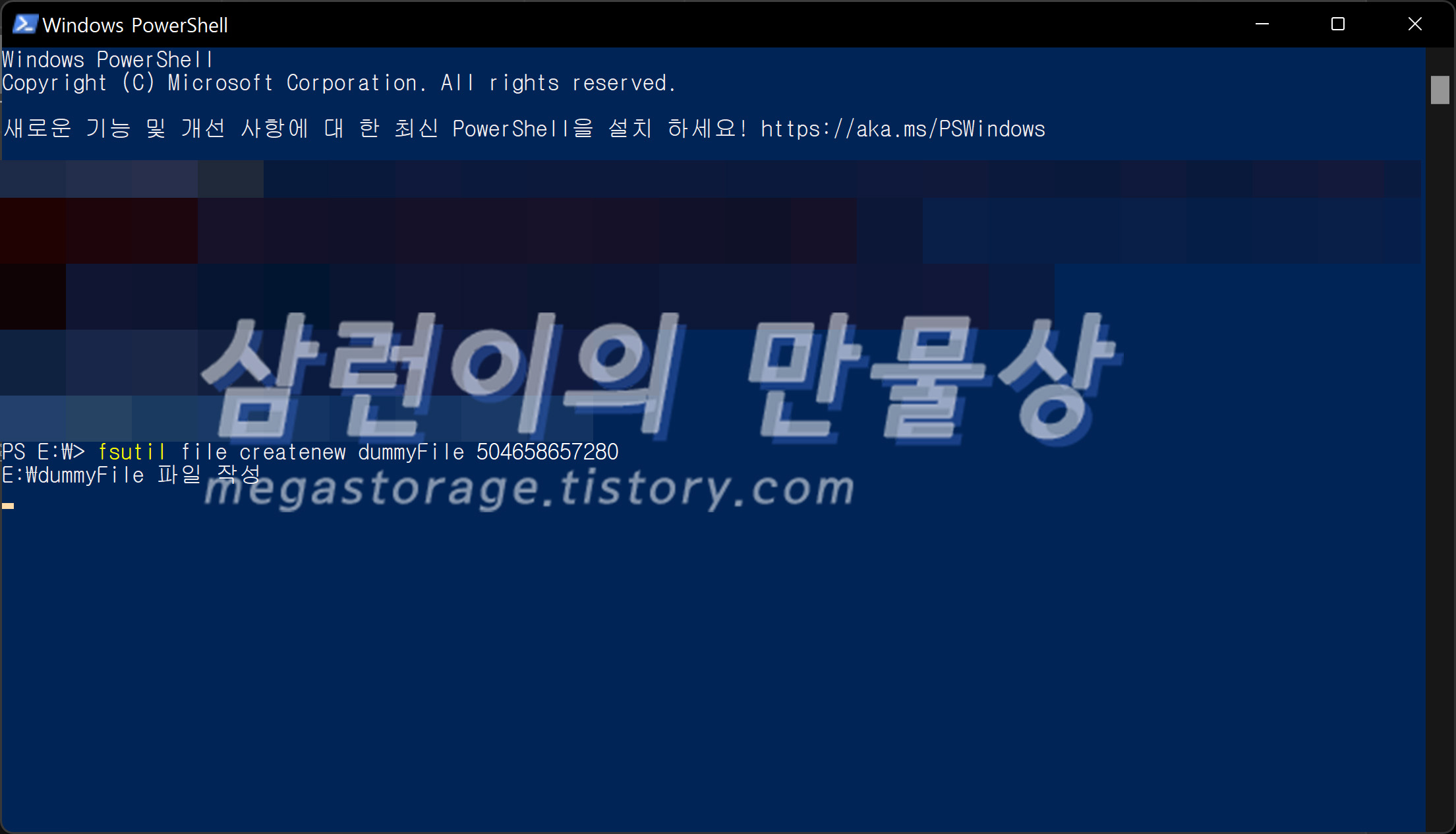 PowerShell의 파일 생성 명령어를 이용해서 약 470GB 상당의 더미 파일을 생성했습니다.