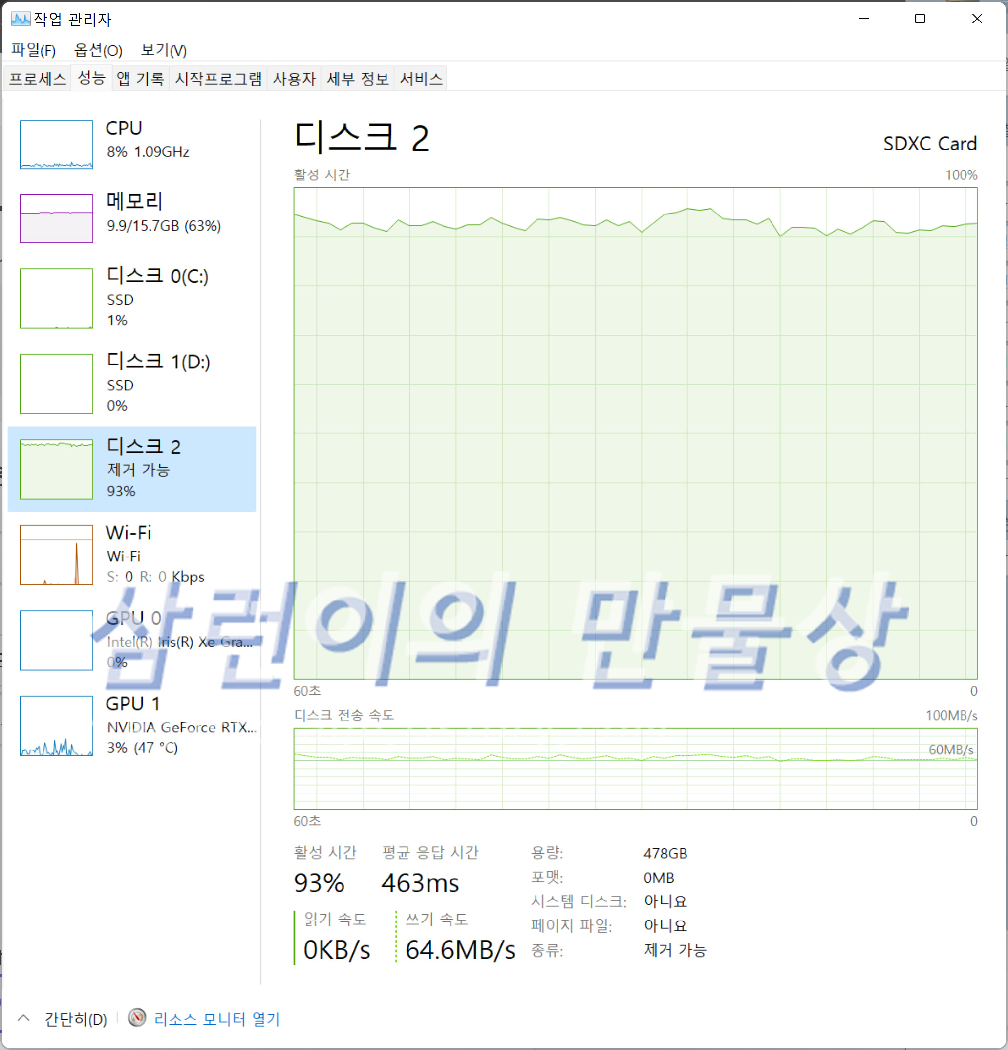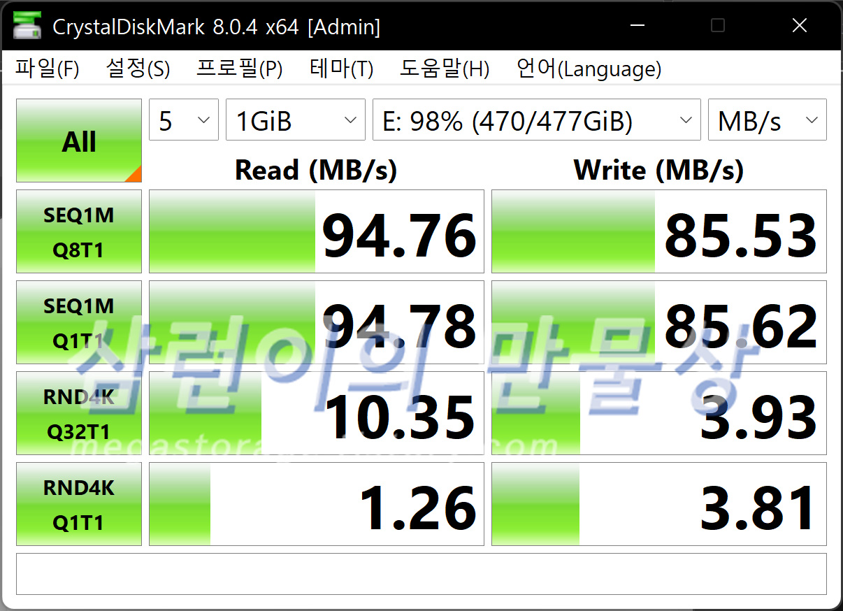 - 읽기 최대 속도 : 95.5MB/s