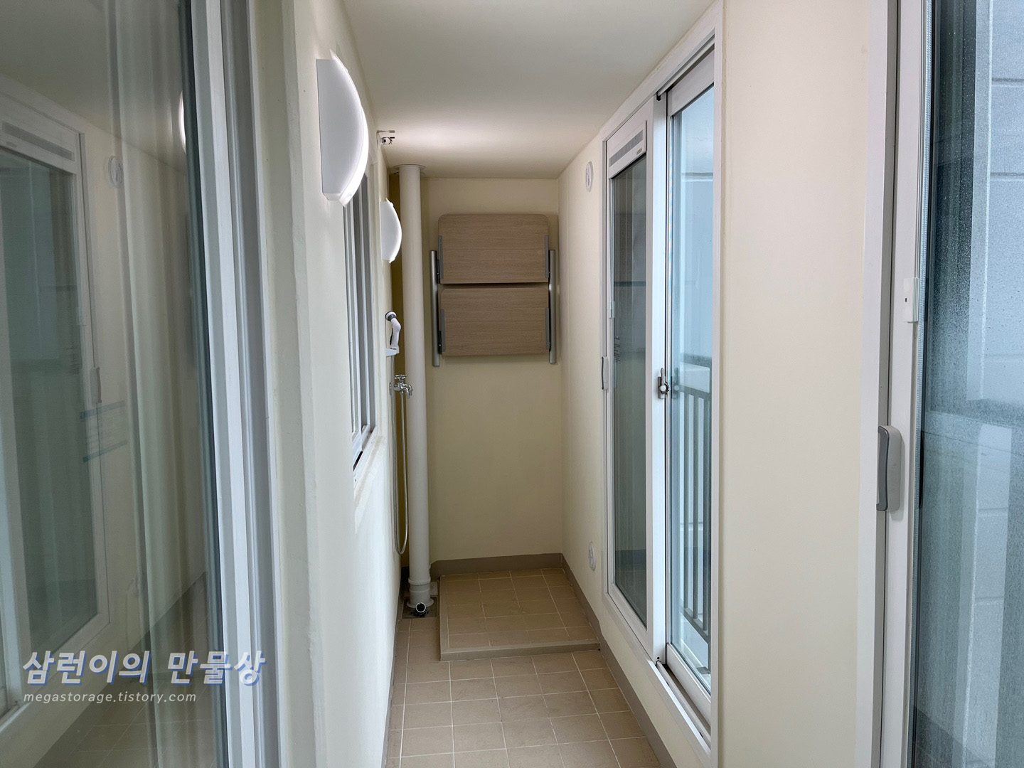 세탁기를 놓을 수 있는 공간입니다. 베란다에는 총 2개의 문이 있습니다.