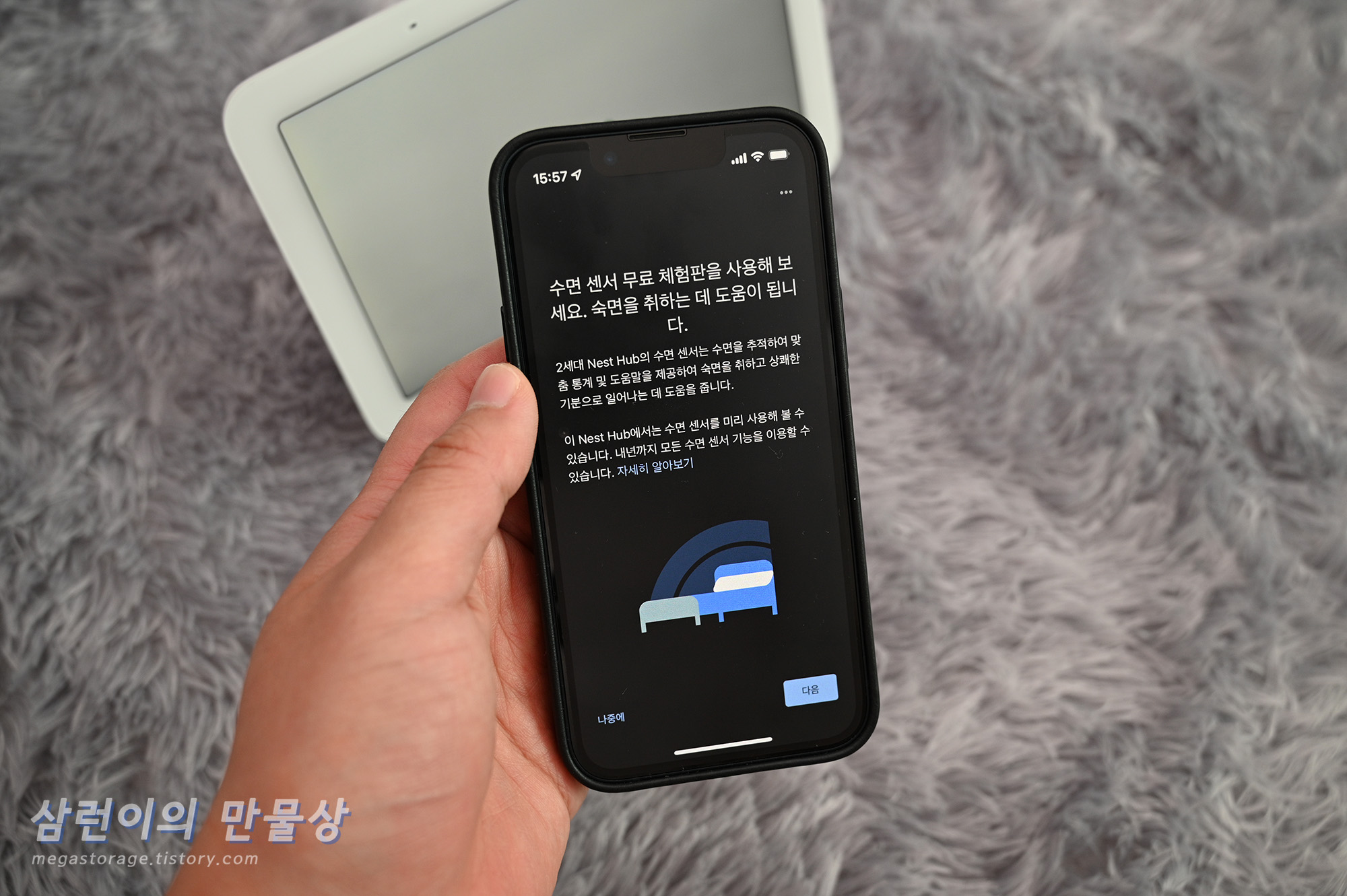 이제 이것 저것 기능 활성화 한다고 많이 물어봅니다. 그 중에서 '수면 센서' 무료 체험판이 눈에 띄었습니다. 실제로 사용해 본 사람들이 구글 네스트 허브 2세대의 수면 추적 기능을 엄청 극찬합니다. 그래서 저도 많이 써보기로 했습니다.