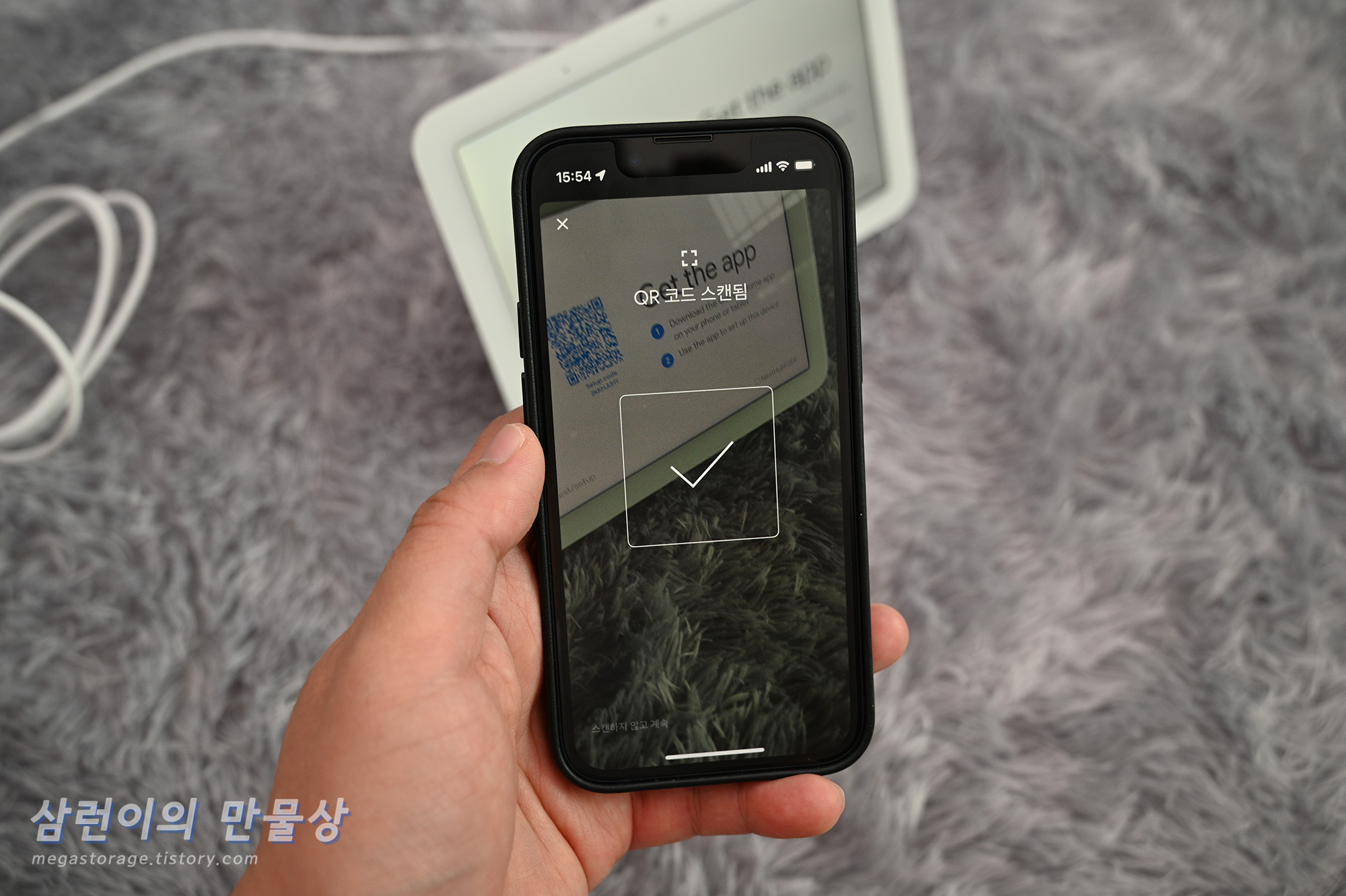 초반 설정에서 QR 코드를 스캔하는 과정이 있습니다. 이 때는 네스트 허브 2세대의 화면에 표시된 QR코드를 찍습니다.