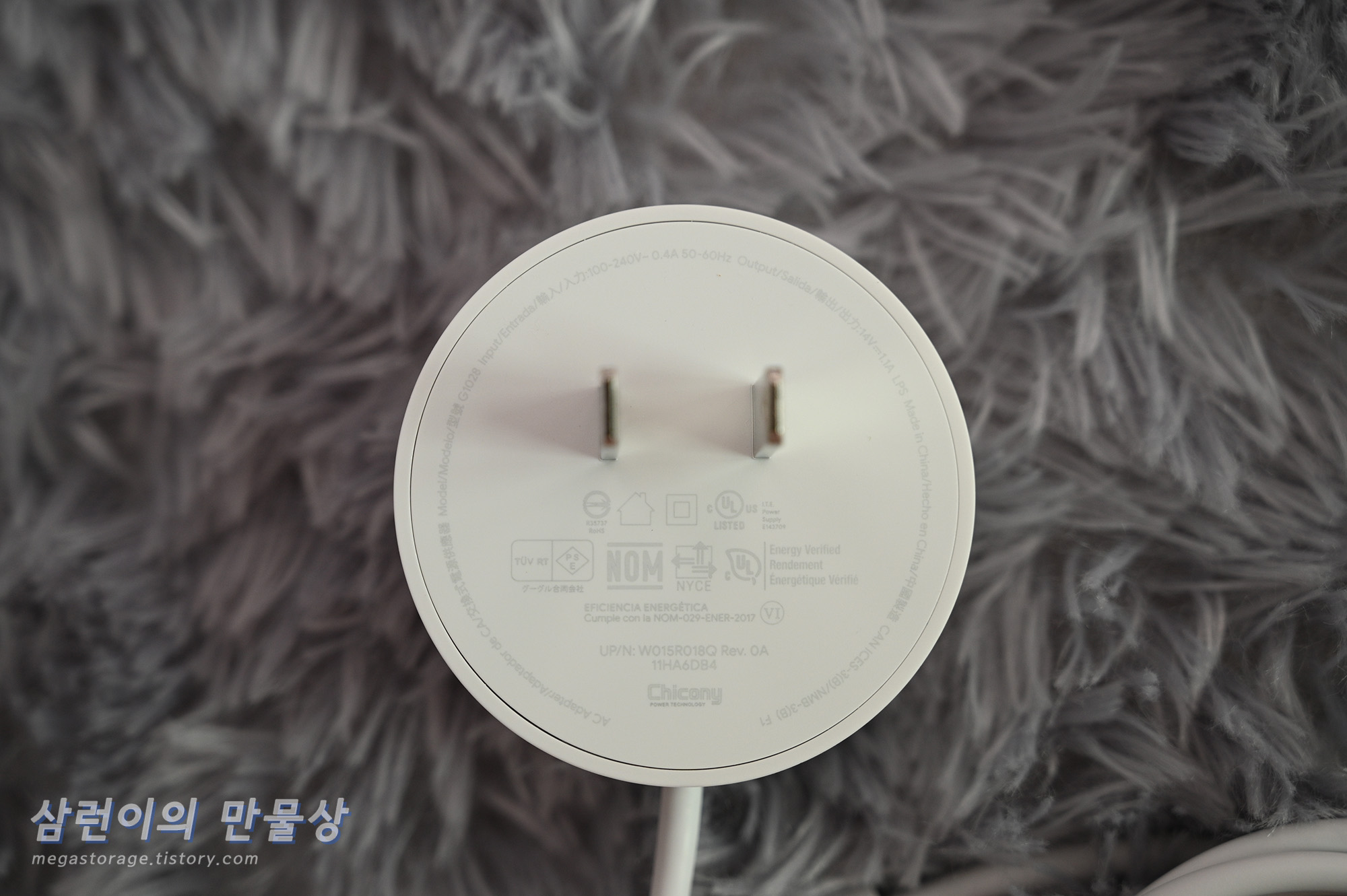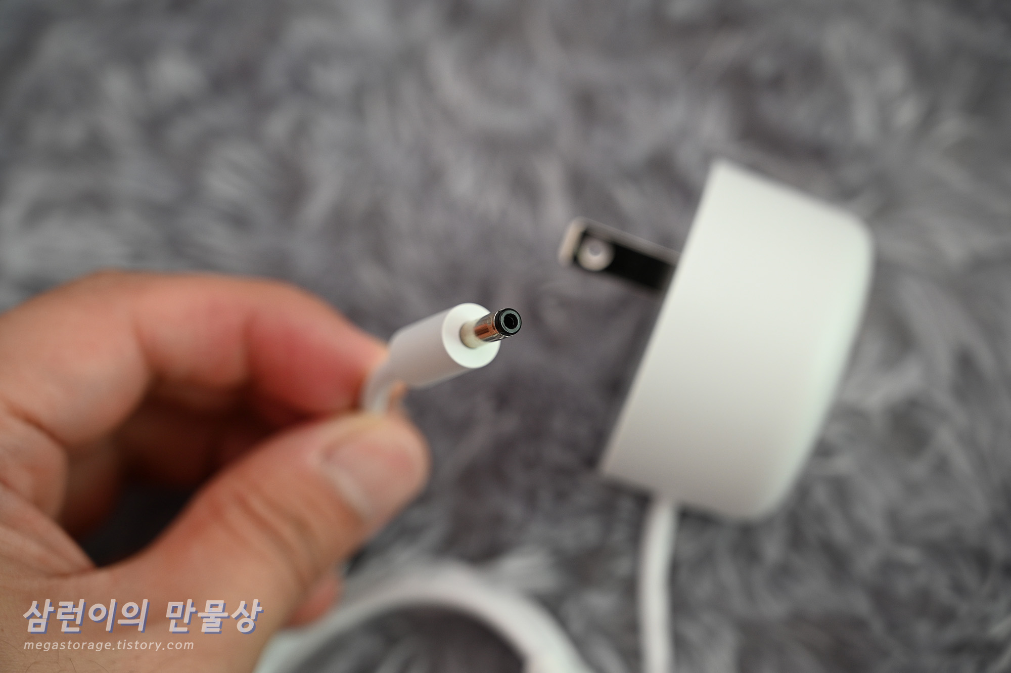 전원 아답터가 둥글둥글한게 참 귀엽습니다. 110v 모양이라서 돼지코를 연결했습니다.