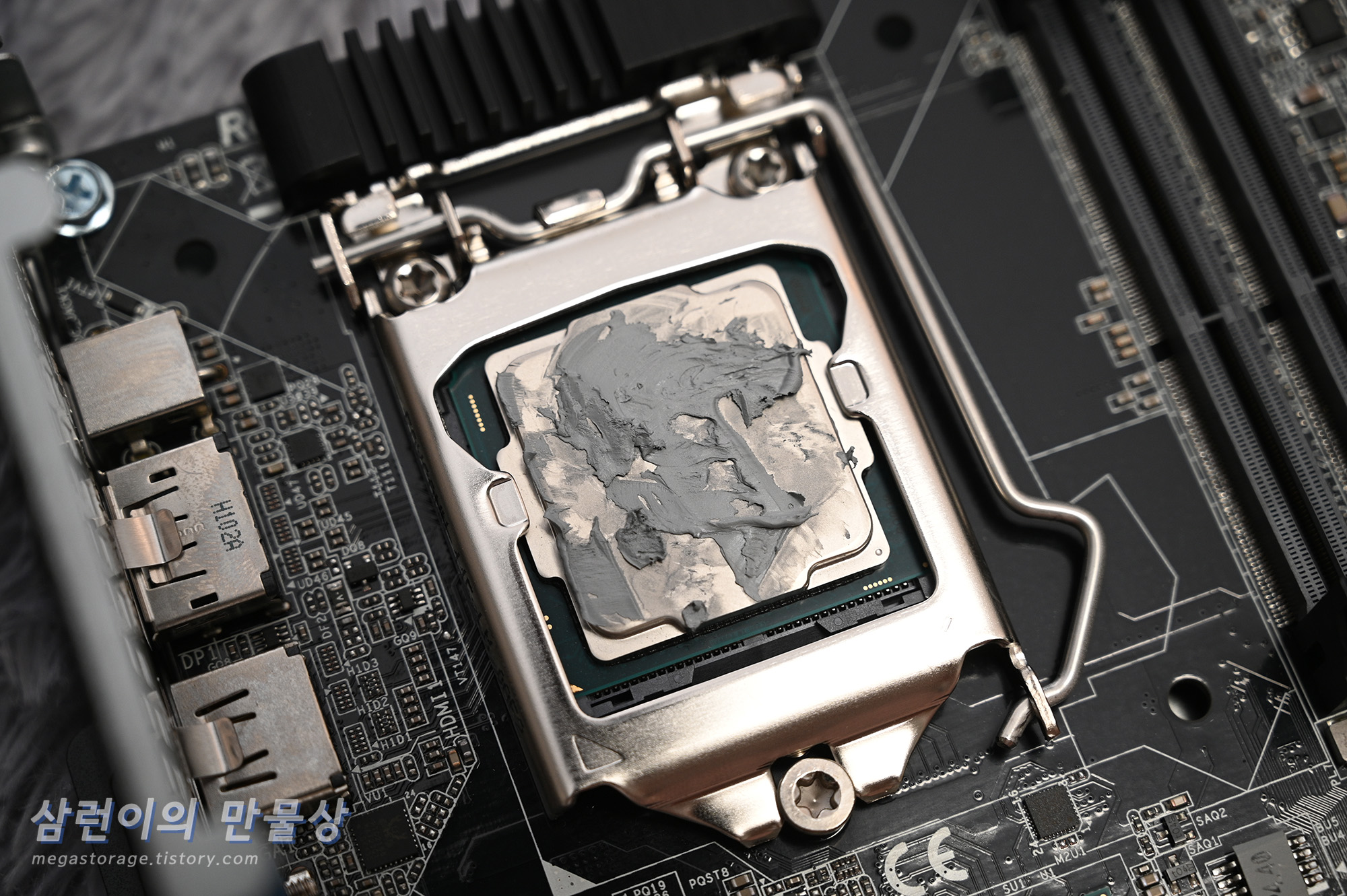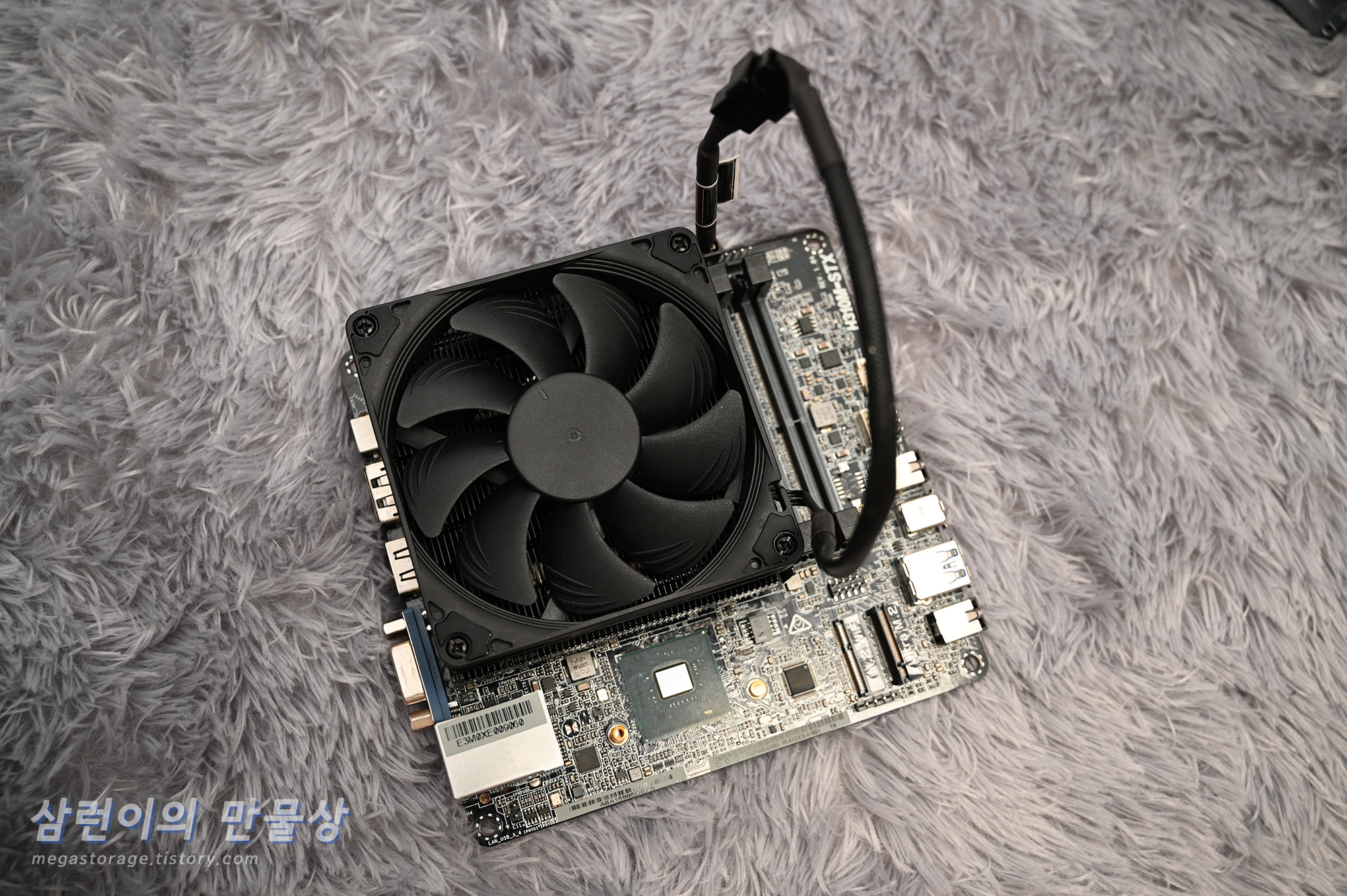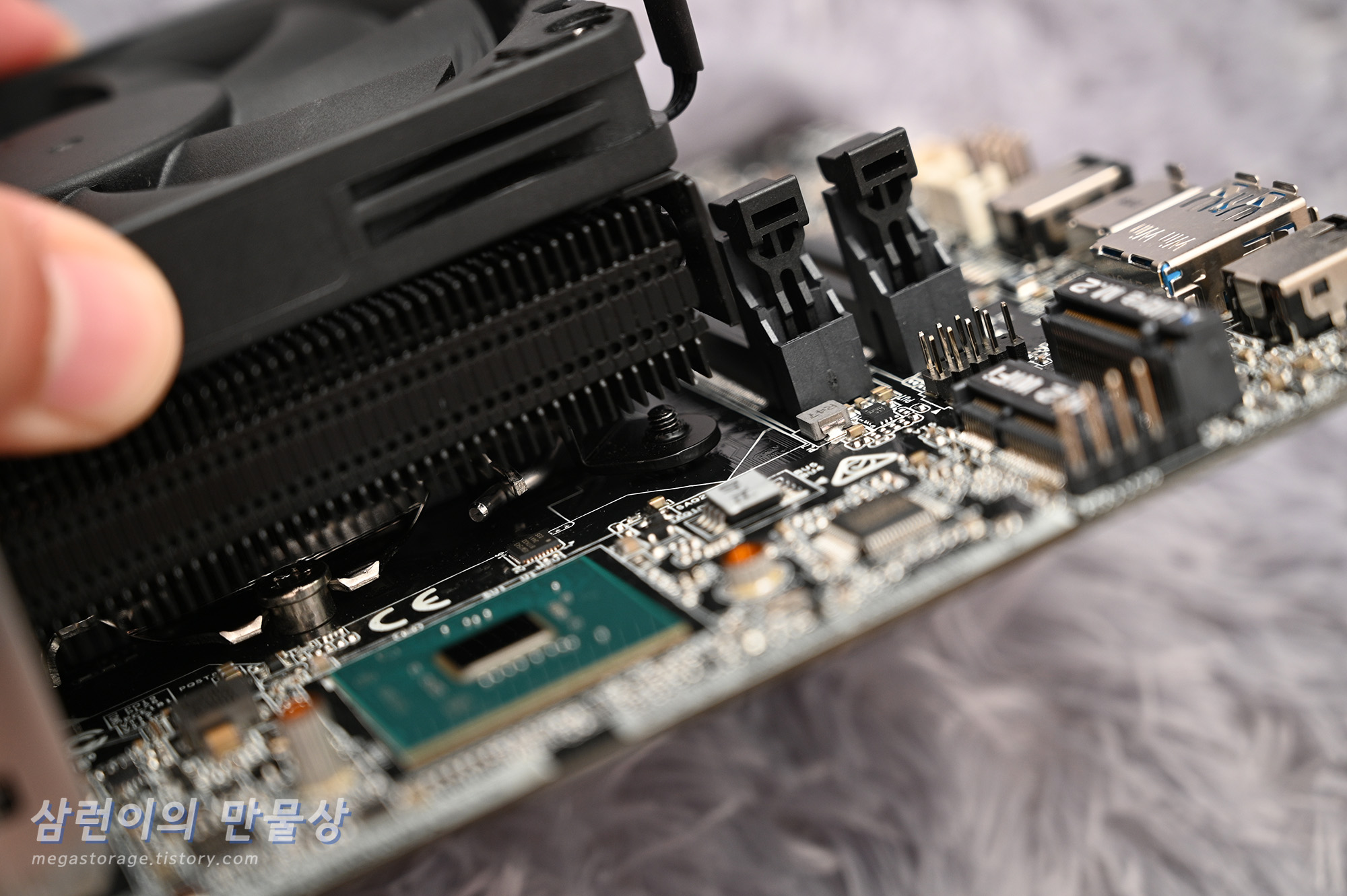 이 쿨러는 동봉된 4개의 나사를 메인보드 뒷면에 위치시켜야 합니다. 그러니까, 메인보드를 들어내야 합니다. 귀찮긴 하지만... 방법이 없네요. 쿨러 설치를 마무리합니다.