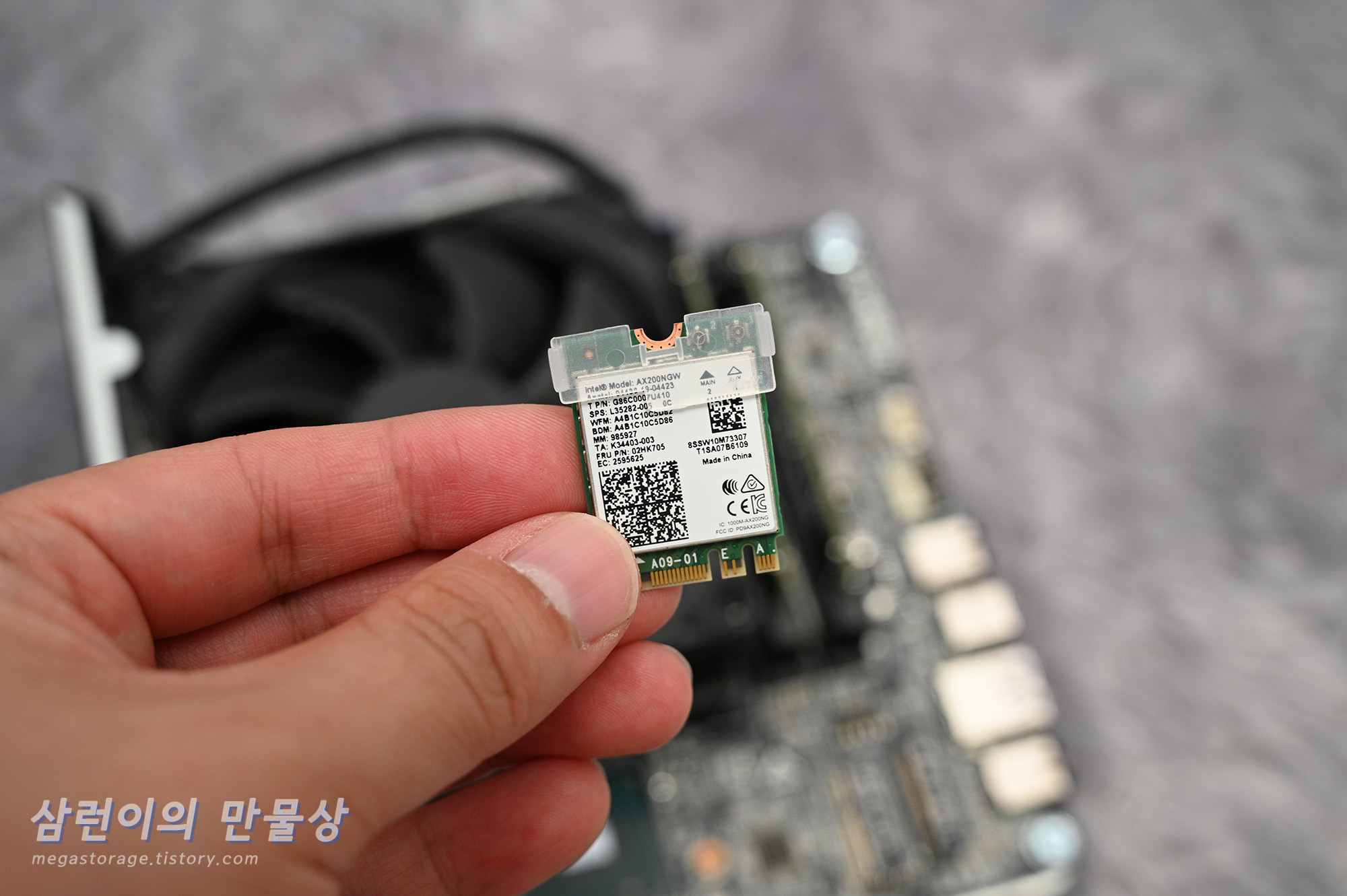 집에서 굴러다니던 인텔 AX200NGW 무선랜 모듈을 설치합니다. 원래 예전에 엔비디아의 '젯슨 나노'에 설치하려고 샀는데, 중고로 팔아버리는 바람에 무용지물이 되었던 녀석입니다. 서랍에서 방치된지 꽤 되었었는데, 여기에서 쓰이네요. 근데 무선랜 안테나가 없어서 이렇게만 설치합니다.